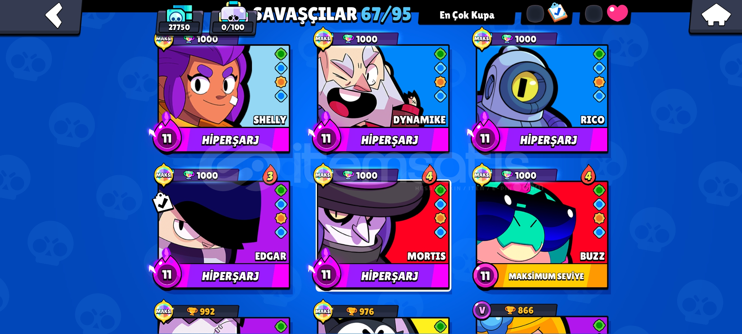 27 K Kupalı 67 Karakter li Brawl Stars Hesabı