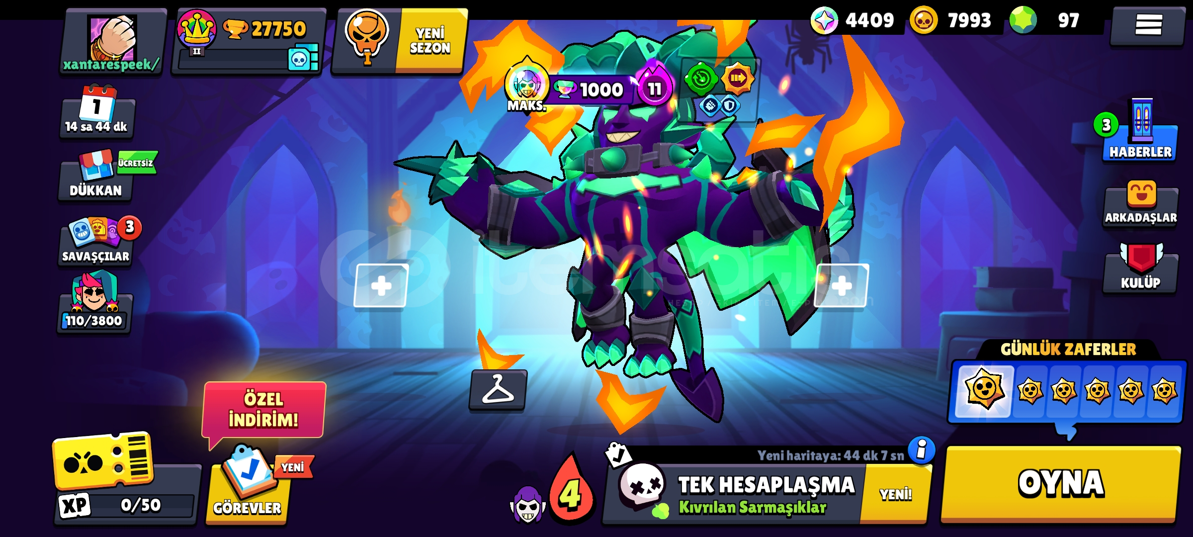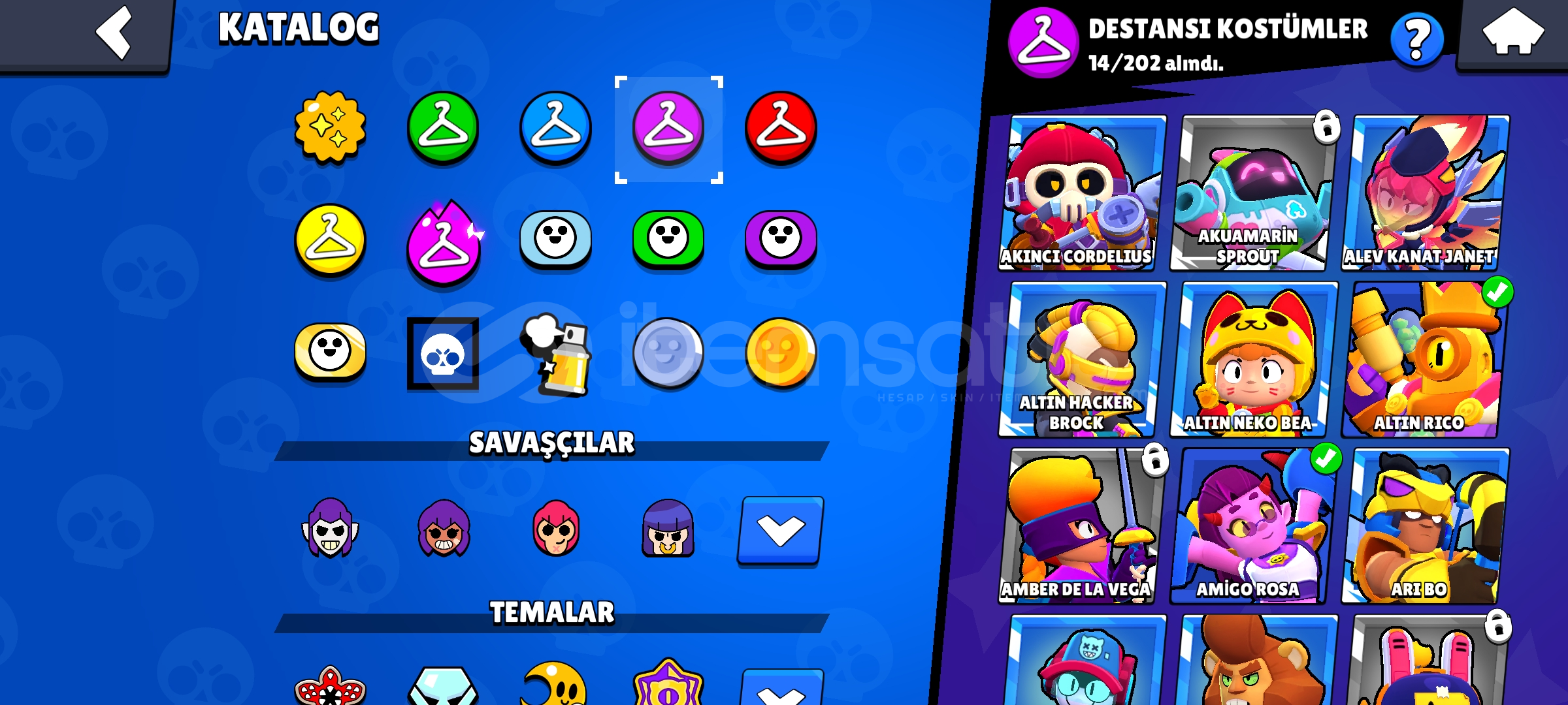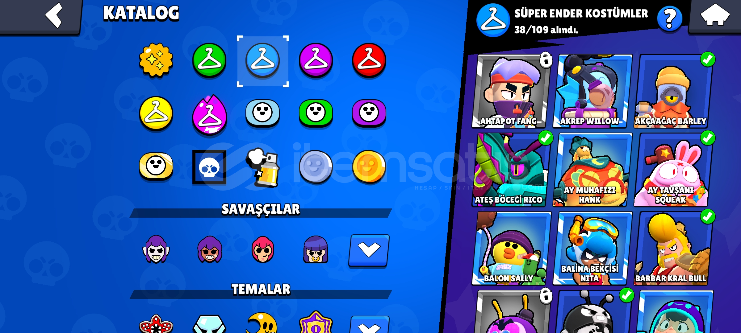 27 K Kupalı 67 Karakter li Brawl Stars Hesabı bol kostümlü kostümler çok güzel