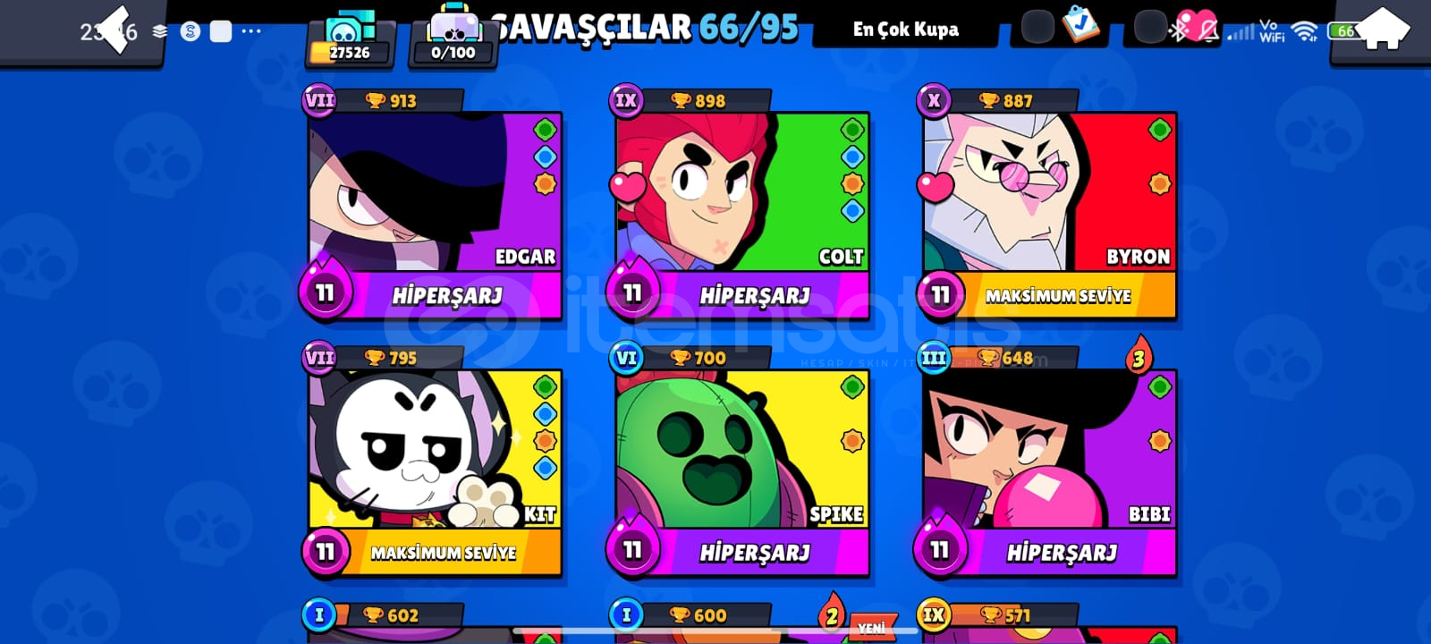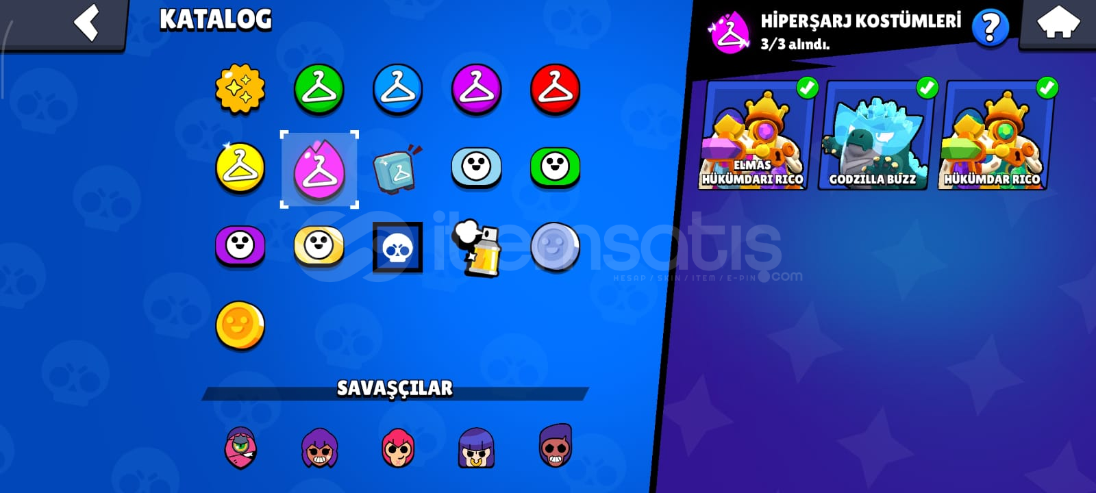 Ciddi alıcılar varsa pazarlık olur Hesapta 9 efsanevi 15 gizemli 7 hiper şarj karakter varKostümler 3 hiperşarj 25 destansi 50 s.ender60 Ender kostüm vardır