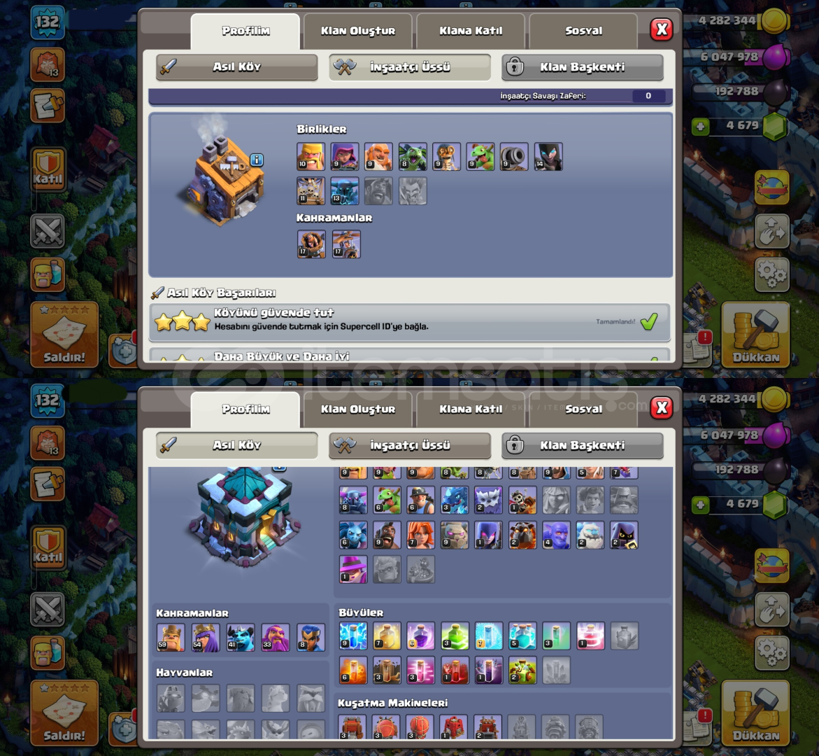 ikili satış ilanıdır.hesap istediginiz maile devredilecektir.hesaplardan çıkış yapıp videolu kanıt atacağım.Cüzi miktarda pazarlık yapılır.Hesaplar ile ilgili soru sormak isterseniz sohbetten yazın.Clash of Clans13. Seviye Belediye BinasıDuvarlar, bazı tuzaklar ve labaratuvar dışında her şey Max.Yan köyler fena değilOrta Çağ Arka planı ve Clash ARama ark...