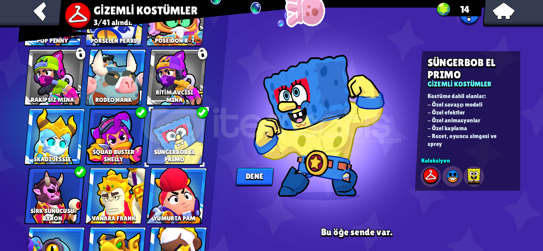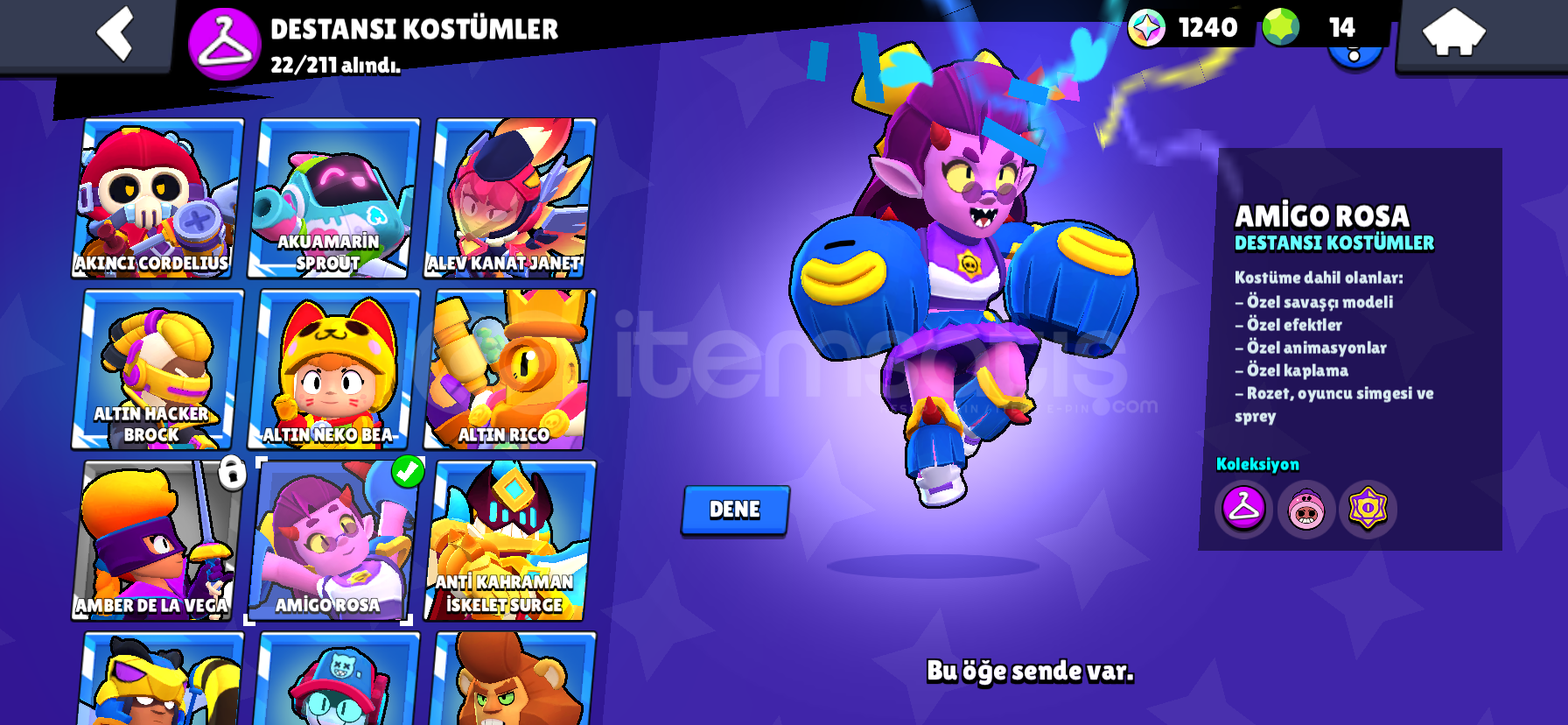 Hesapda güzel kostümler vardır ve 27k kupadır