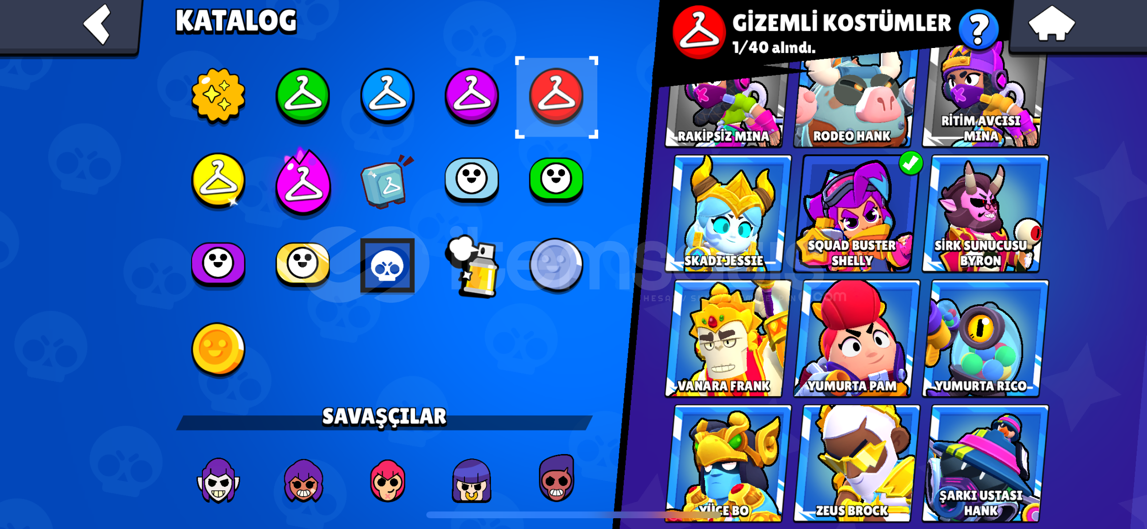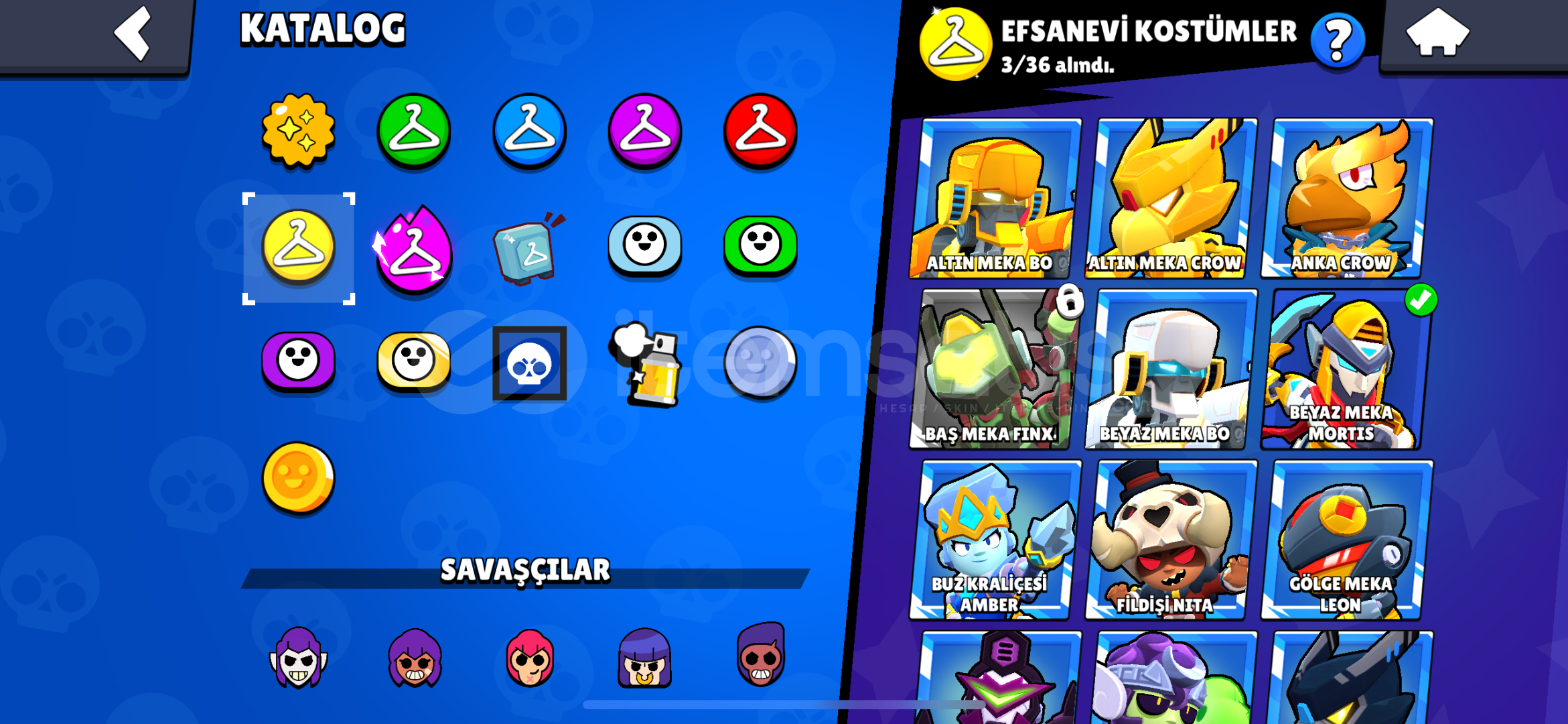 dostlar öncelikle iyi günler dilerim hesabım 27k karakterlerin cogu oynamadığım icin düşük kupa levelleri gayet yüksek tam bi mortis manyağıyım ondan kaynaklı mortisin sadece 2 kostümü yok birisi renk diğeri saf altın 154 kostüm bulunmakta hesap 2019 2020 hesabıdır keyifli alışverişler dileriz diğer oyunlar icin profilimize göz atabilirsiniz çıtır...