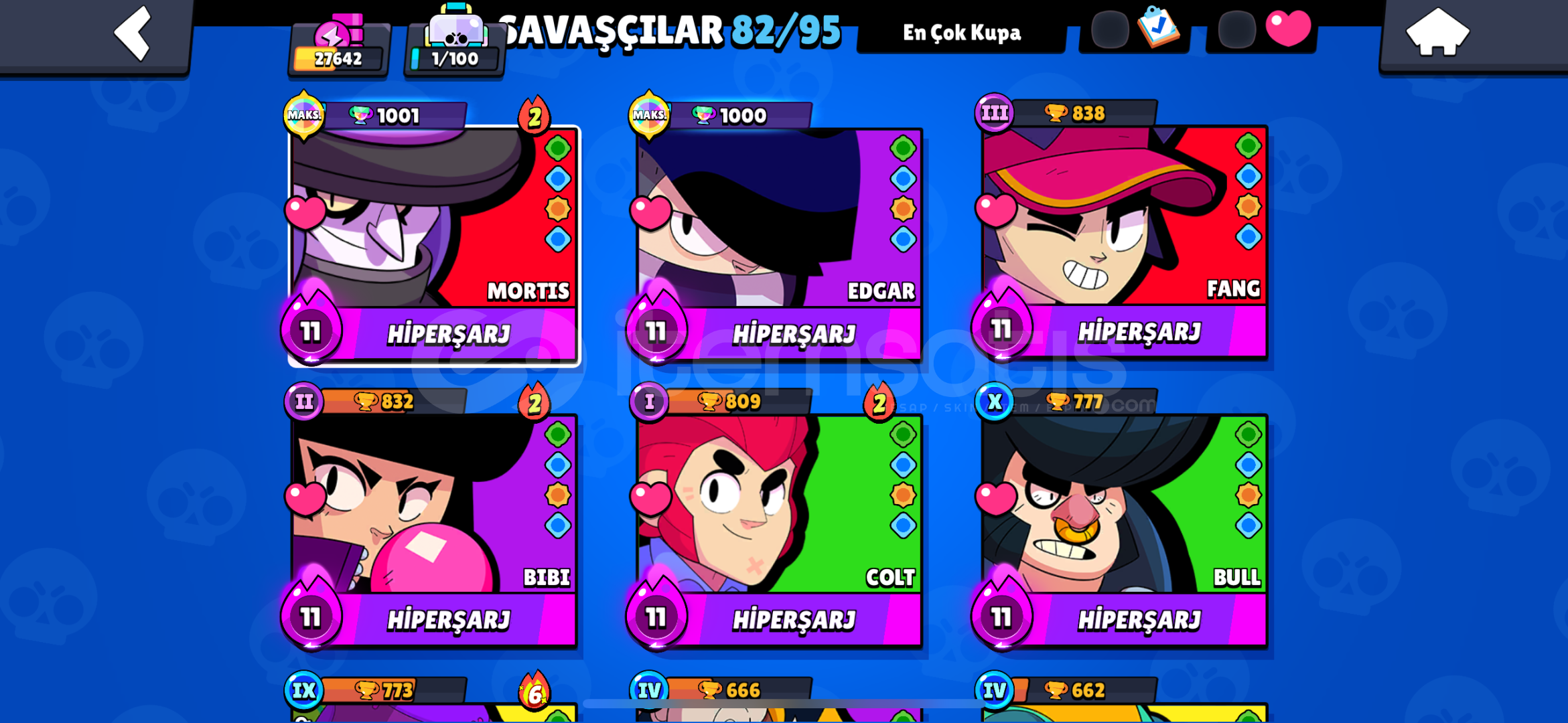 dostlar öncelikle iyi günler dilerim hesabım 27k karakterlerin cogu oynamadığım icin düşük kupa levelleri gayet yüksek tam bi mortis manyağıyım ondan kaynaklı mortisin sadece 2 kostümü yok birisi renk diğeri saf altın 154 kostüm bulunmakta hesap 2019 2020 hesabıdır keyifli alışverişler dileriz diğer oyunlar icin profilimize göz atabilirsiniz çıtırından pazarlık yaparız