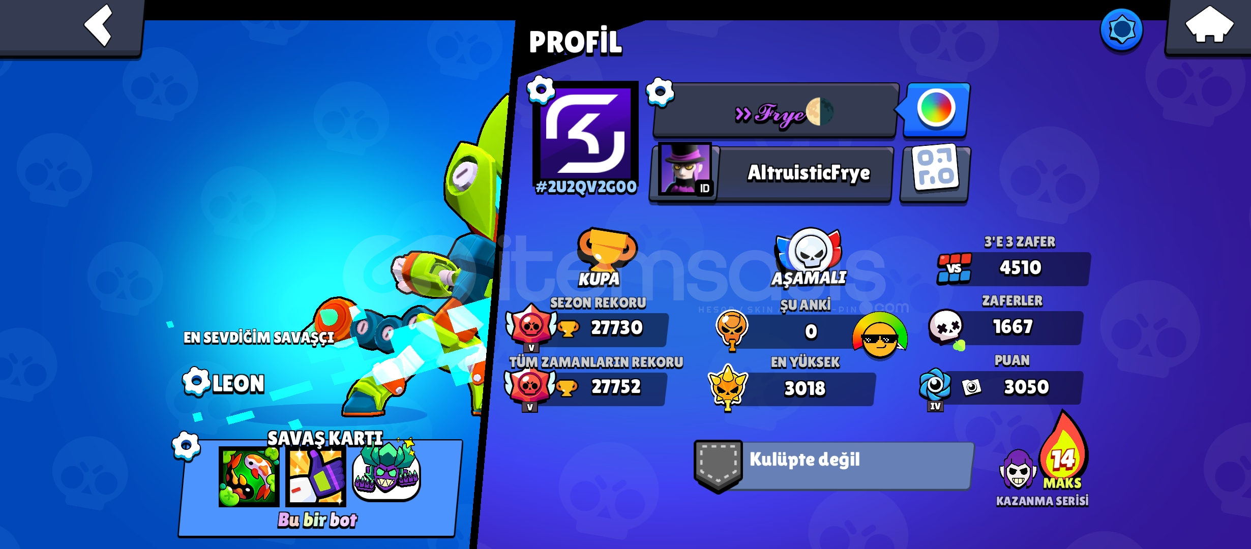 1 hiperşarz 3 efsanevi 24 destansı kostümlü hesap 82 karakter 27 bin kupa pişman olmazsınız sadece 1200 TL ilgilenenler için instagram: oyunhesapsatis39