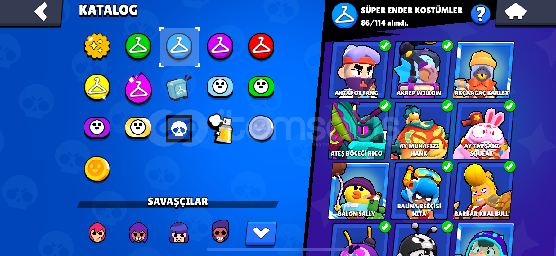Hesap dolunun dolusudur :18k kayıt puanıMars 1 şöhret13 ÜnvanTüm zamanlar tr 108 Leon (1688)40 11SV karakterKostüm sayısı şöyledir :Ender 85Süper ender 88destansı 8812 gizemli7 Efsanevi3 hiper1 gümüş1 altınTOTAL 285 kostümİG:klkn_huseynta/kas varhayırlı günler