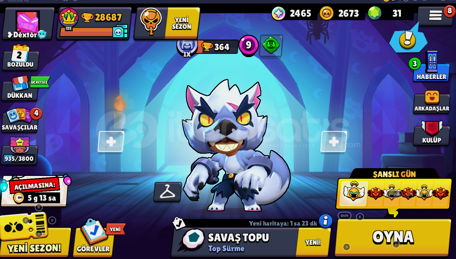 88 KOSTÜM (29 ENDER, 27 SÜPER ENDER,27 DESTANSI,3 gizemli 1 hiperşarj, Hesap içinde baykuş shelly, kurt leon küflü mike korsan colt yıldız shelly yeni ve çok daha fazlası mevcut !)