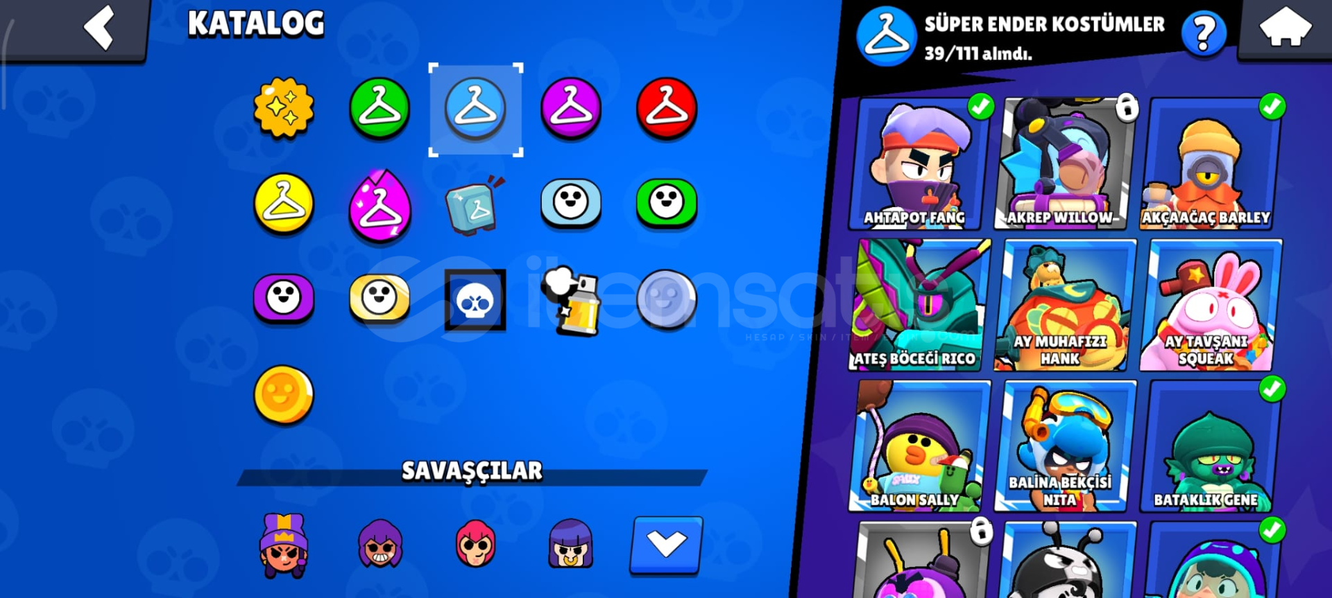 içinde birsuru skın olan bralw stars hesabı e maıl kullanıcıya devredılecektır toplam 75/97dir