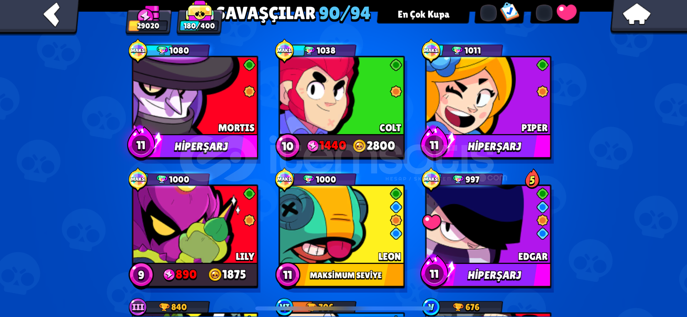 Hesap 29k 90 adet karakter 200 den fazla kostüm