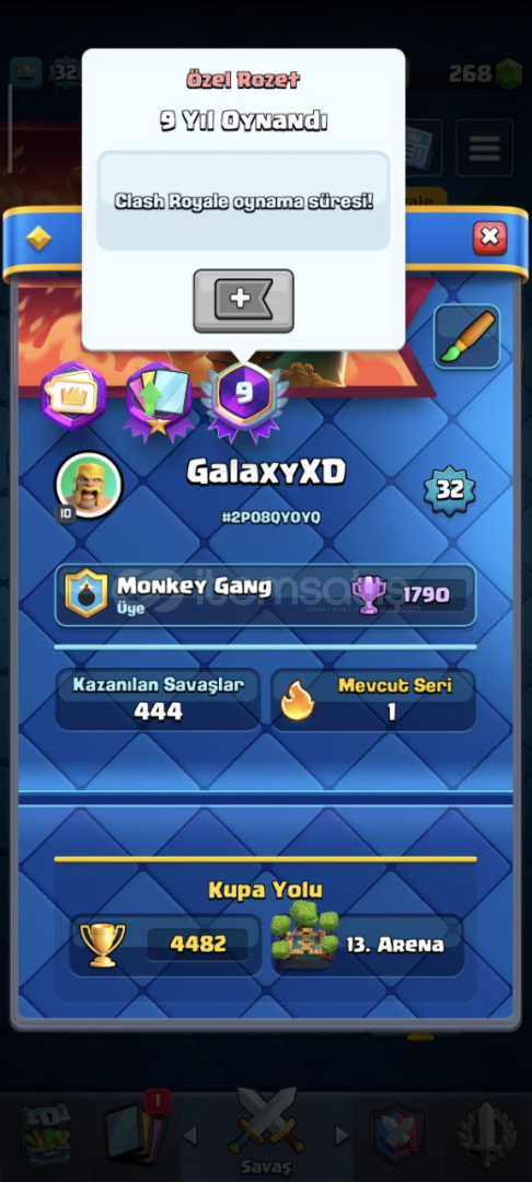 🎉 Clash Royale – 9 Yıllık, Ultra Nadir Hesap!Bu hesap; son derece nadir içeriklerle laçırmayacağınız, yatırım niteliğinde özel bir hesaptır.🔥 Hesap Özellikleri:🏆 9 Yıllık Madalya (Son derece nadir!)🏰 Çok Eski ve Bulunması Zor Kule Görünümleri😀 Nadir ve Koleksiyonluk Emote’lar✨ Toplam 65 Karakter🎭 71 Adet Kostüm...