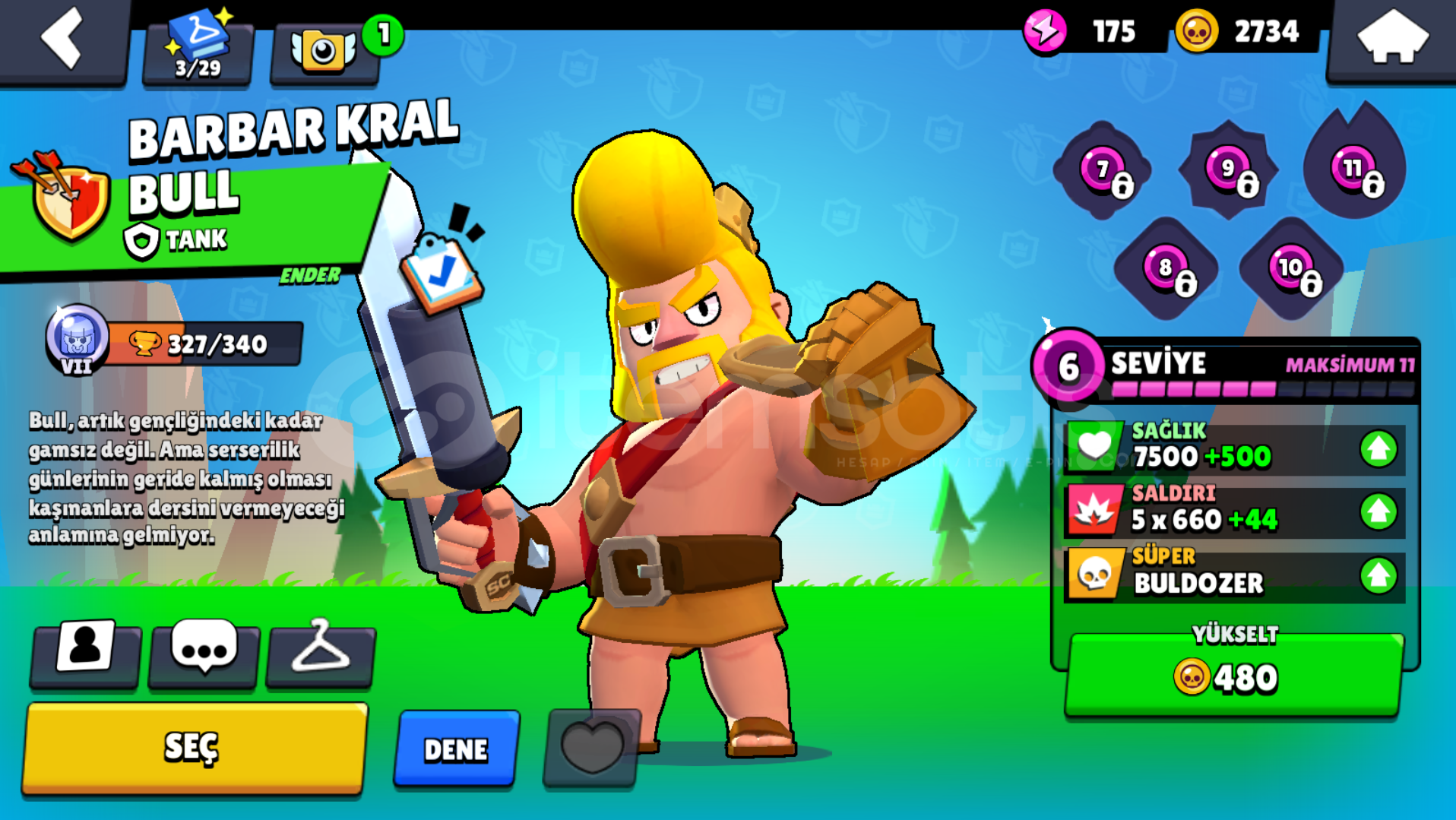 • 🛡️ Barbar Kral Bull: Clash of Clans iş birliği ile sınırlı sürede dağıtılmış, tekrar gelmemiş özel etkinlik kostümüdür. Hesapta bulunması oldukça değerlidir.