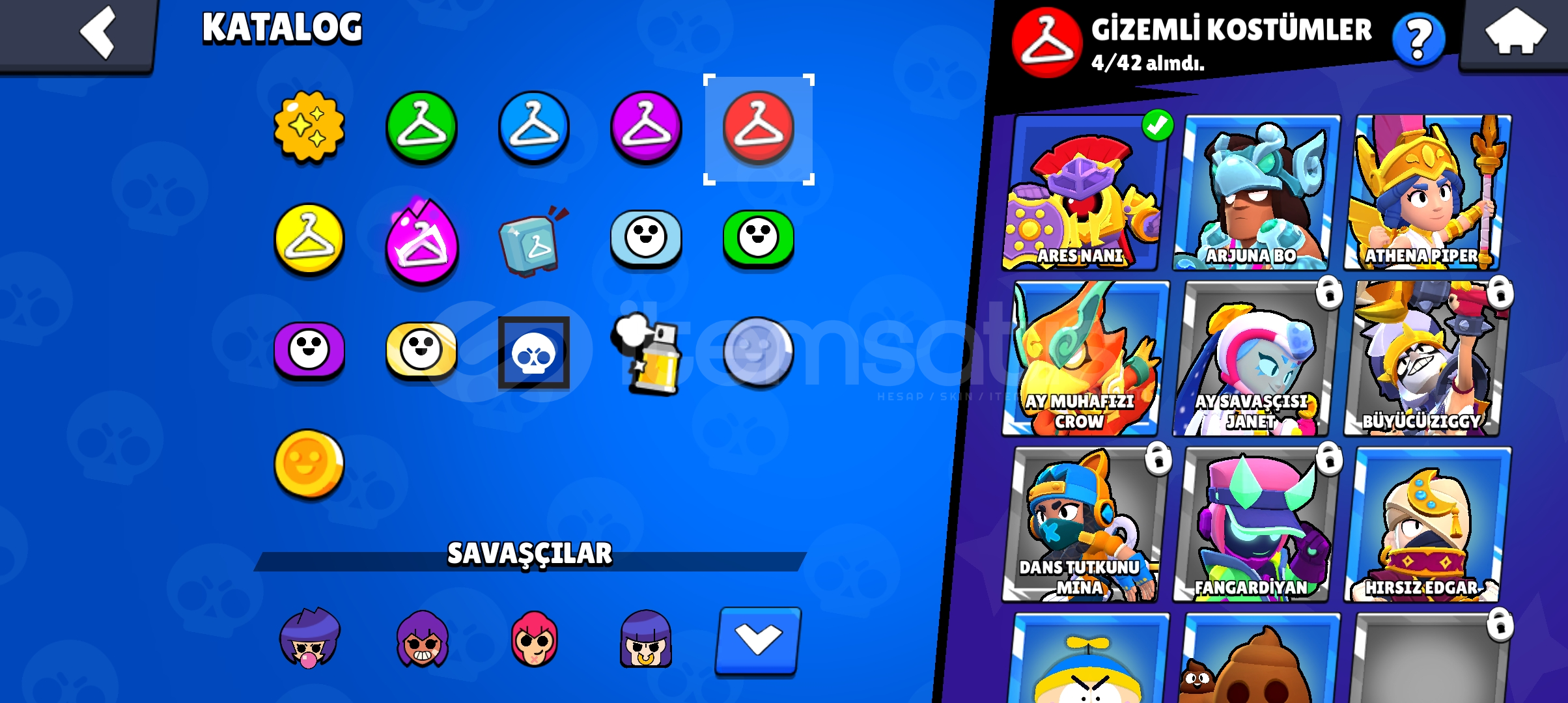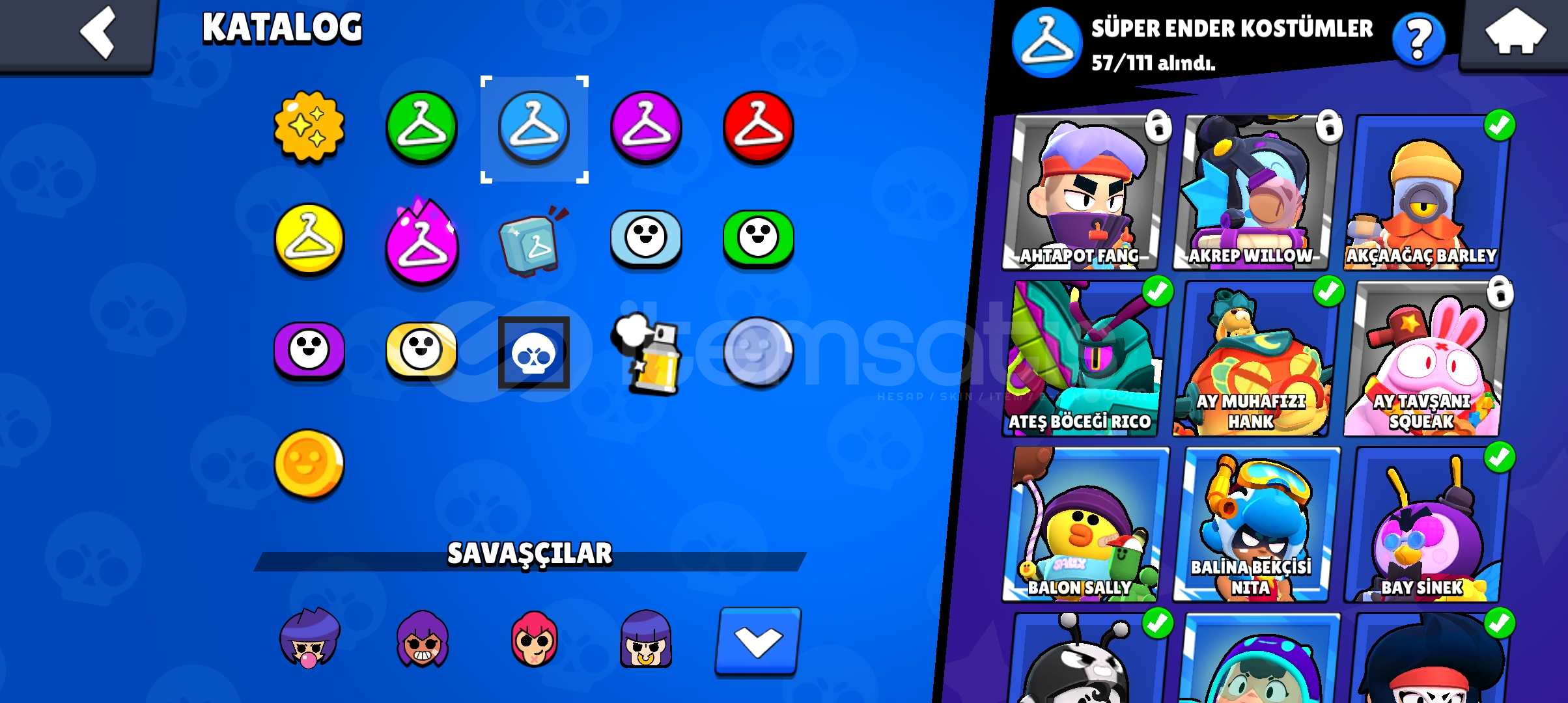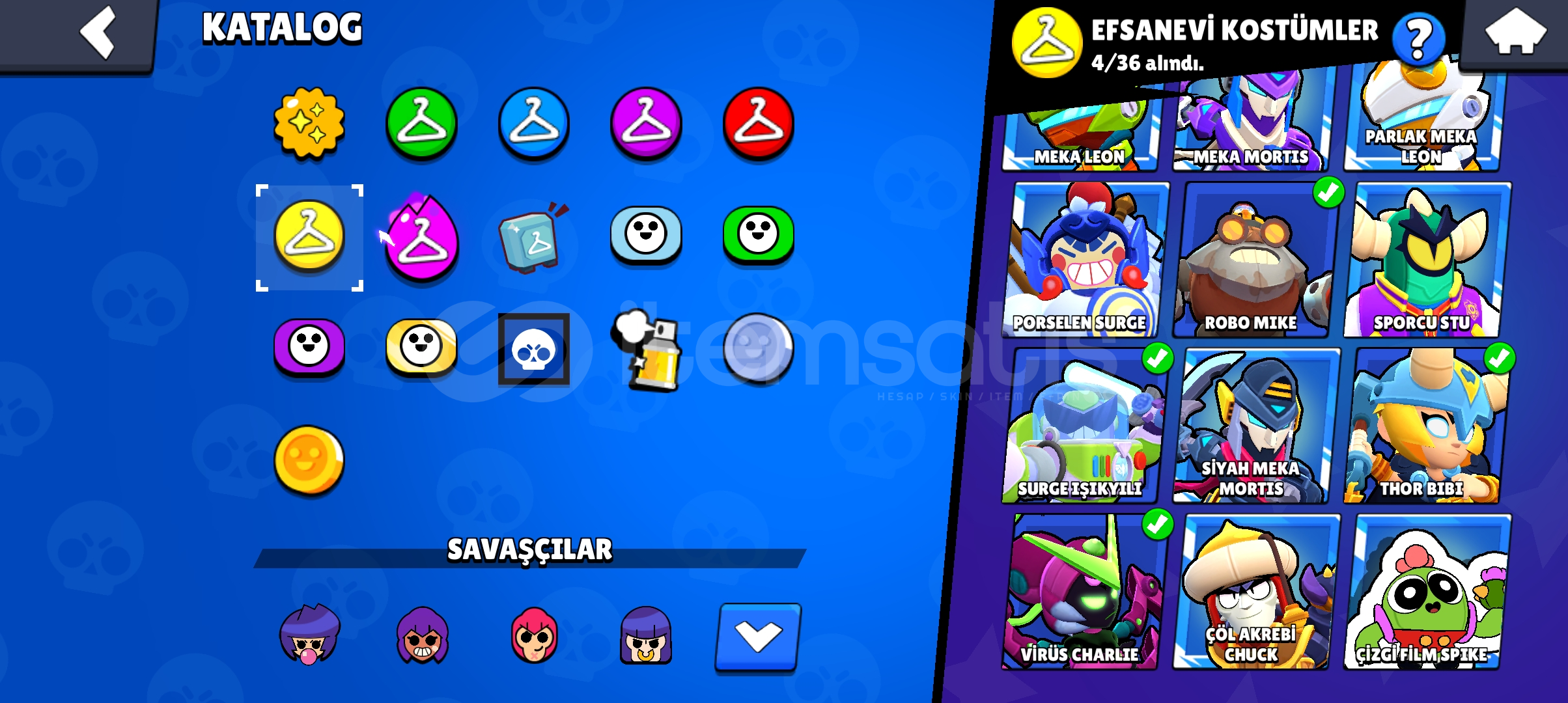 3 HESAP 1 GMAİLDE+BRAWL STARS-Hesap 51k kupa-4 efsanevi kostüm(Thor bibi,robo Mike, virüs Charlie,isikyili surge)-4 gizemli kostüm(char Nani falan)-60 tane destansi kostüm(nadir kostümler vardır(Meka tick,noel baba stu,kizakci grif falan)-57 tane süper ender(Noel Baba mike var çok özel kostüm ve nadir)-Brawl paşa plus açıldı bir sezon oda meka tick sezonu ve meka tick oyuna bir daha gelmicek çünkü anl...