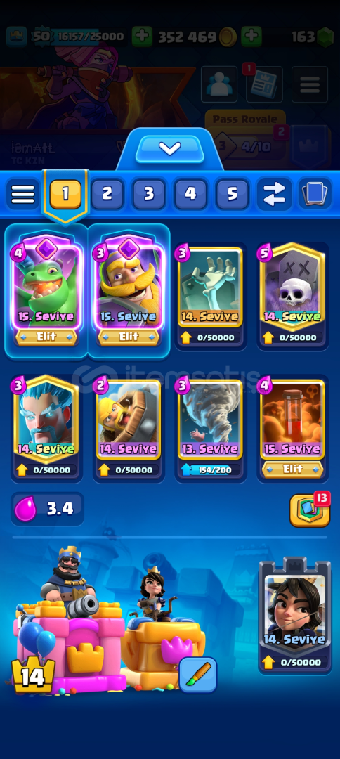 -2 tane pass royale alındı 2 Side güzel skinler birisi golem barbar diğeri goblin kraliçe