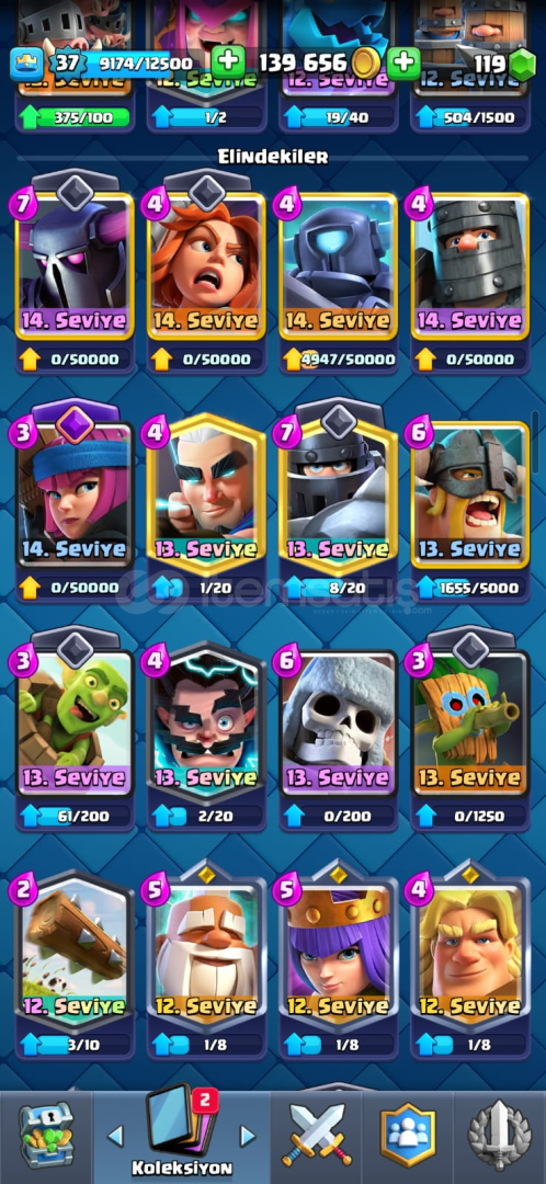 • Bu Kartlar DIşında: Oyundaki Tüm Kartlar , Şampiyonlar ve Kuleler vardır.