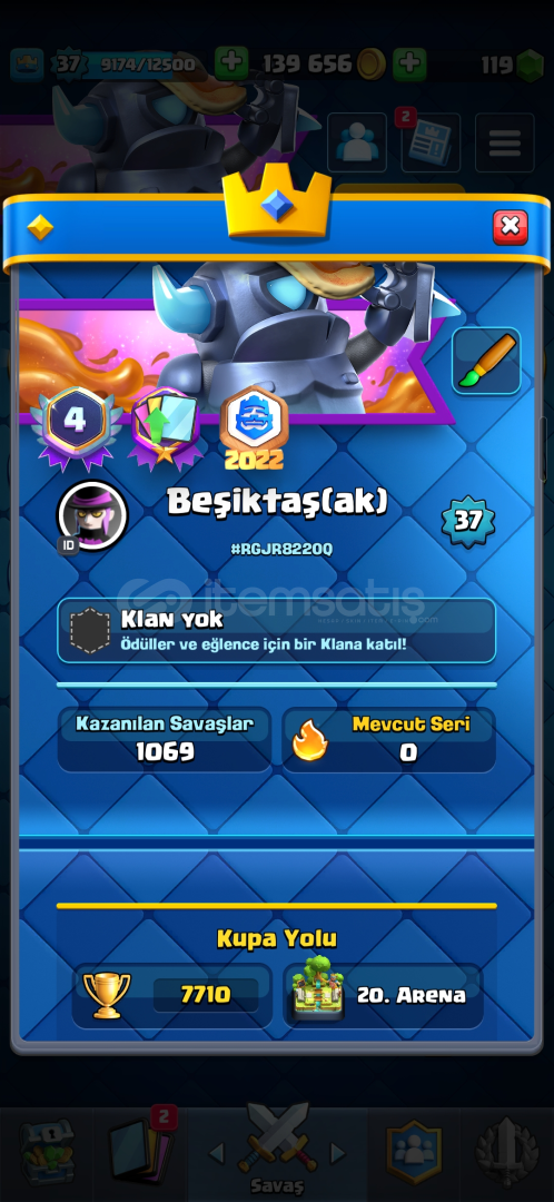 • Clas Royal Hesabı 7710 Kupa ve 20 Arenadadır