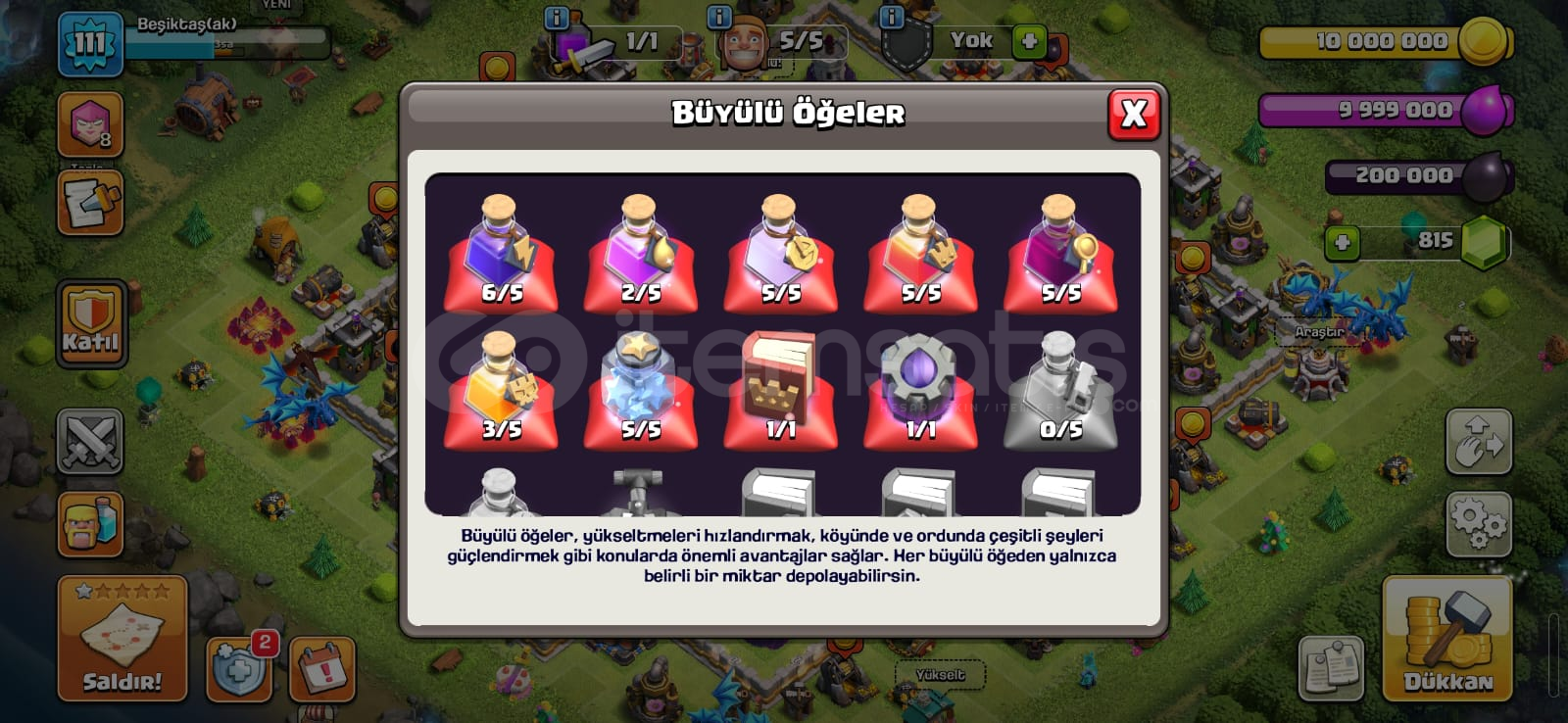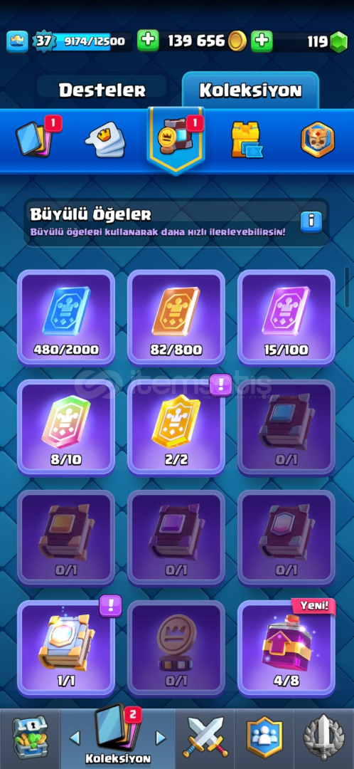 • Bu Kartlar DIşında: Oyundaki Tüm Kartlar , Şampiyonlar ve Kuleler vardır.
