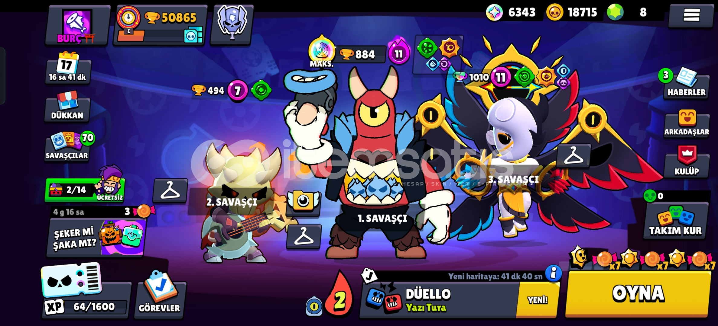 Hesabımız 2019 kurulumdur.İsim değiştirme 90 elmas istemektedir.İlanı aldığınız zaman hesabın gmail ve şifresi Otomatik Olarak size gelecektir.Hesabın takım sohbeti açıktır.Hesap teslim edildikten sonra hesaptan çıkış videosu atılır.Hesabın telefon koruması yoktur.