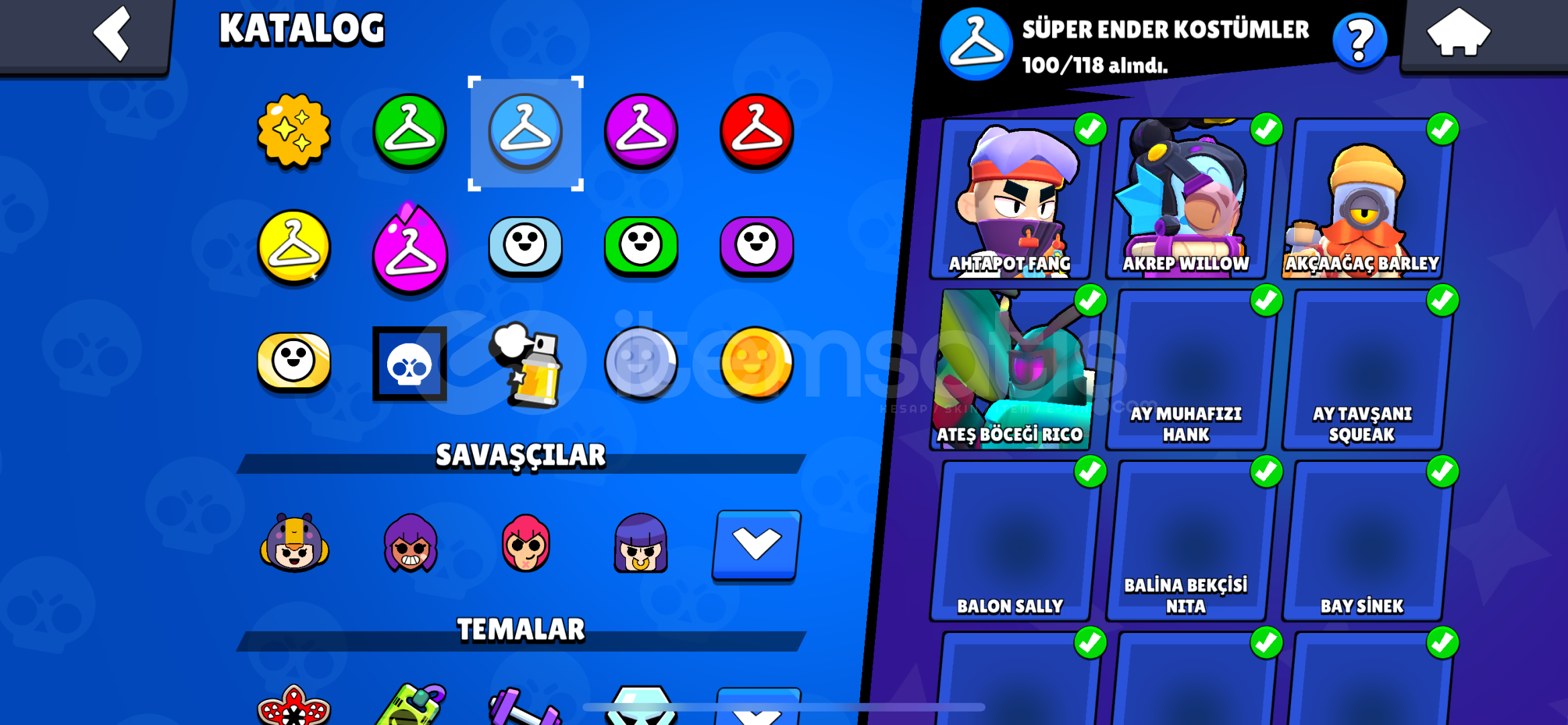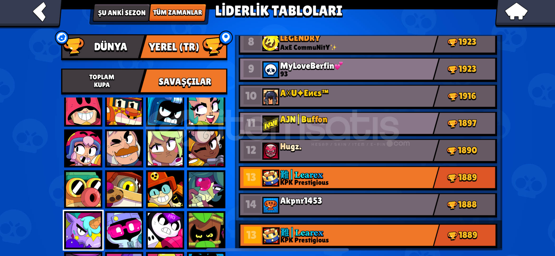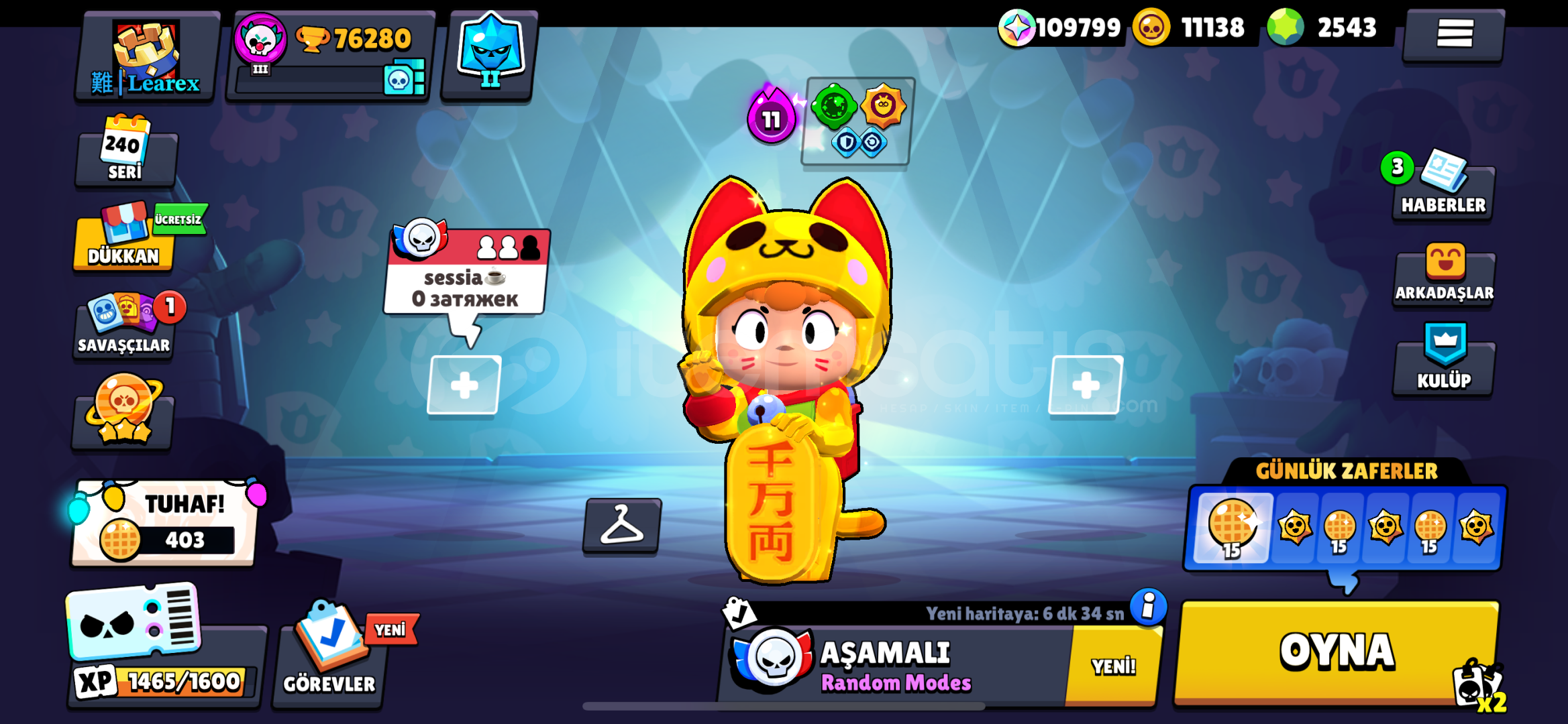 Hesapta 120K Mücevher VardırHesapta Mavi Kral Frank Vardır Hesapta 2500 Taş VardırHesaba 20.000dan Fazla Yatırılmıştır Ender:86 Süper Ender:100Destansı:159Gizemli:21Efsanevi:15 Hesapta 120K Mücevher Ve 2500 Taş Olduğu için İstediğiniz Gibi Harcayabilirsin Hesap Eski Sistemde 4 Kere Master Olmustur Hesapta 44 Ünvan Vardır 14Ü Bp Diğerleri KarakterHesap Berry Tr 13. Mandy 33. Daha cok Va...