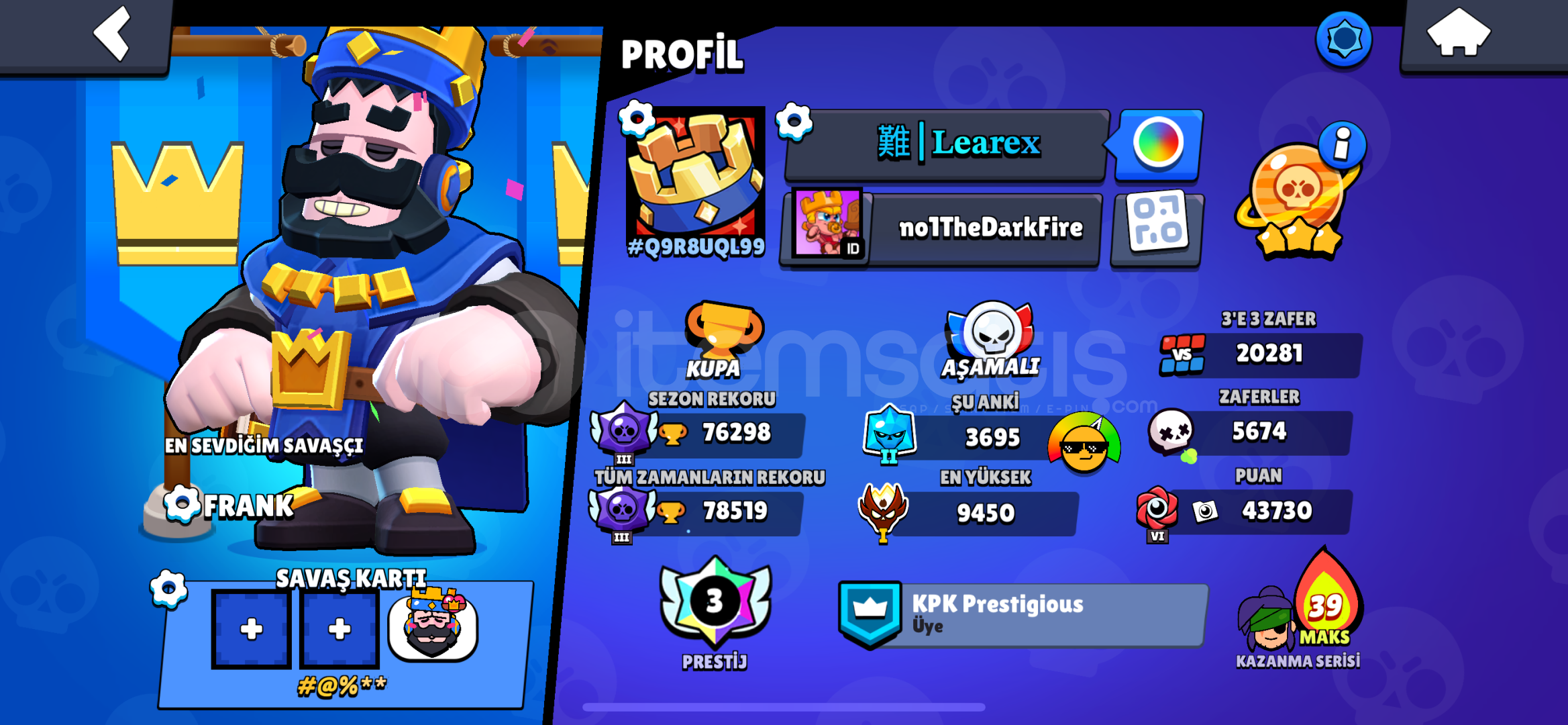 Hesapta 120K Mücevher VardırHesapta Mavi Kral Frank Vardır Hesapta 2500 Taş VardırHesaba 20.000dan Fazla Yatırılm...