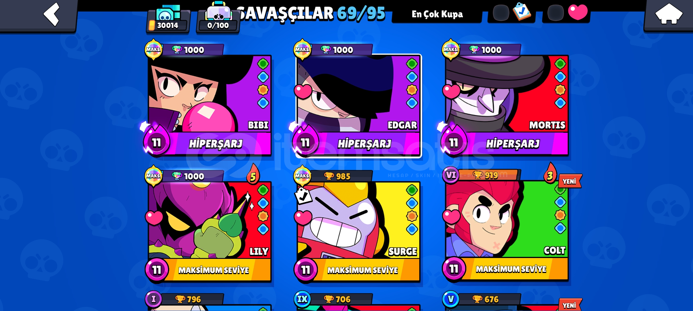 Artık telefondan oyun oynamıyorum 3-4 aydır girmiyorum ve bazı sebeblerden parayada ihtiyaç oluyor o yüzden hesabımı satıyorum ilk sahibi benim 3 yıldır kullanıyorum mail değişimi olucaktir herhangi sorunda yazabilirsiniz alana hayırlı olsun-89 skin vardır-204 rozet vardır-Resimdeki gibi 30 K kupadır