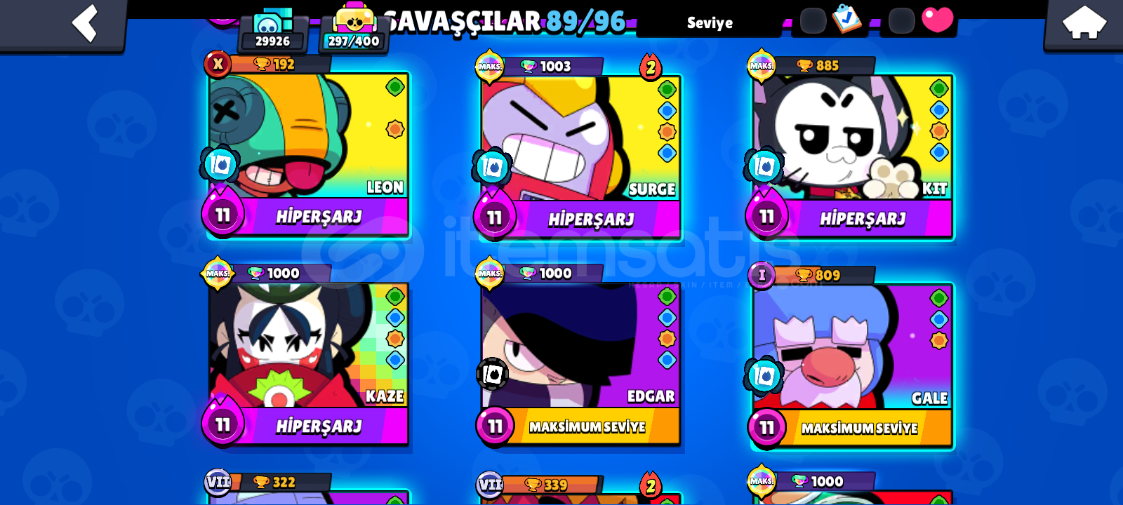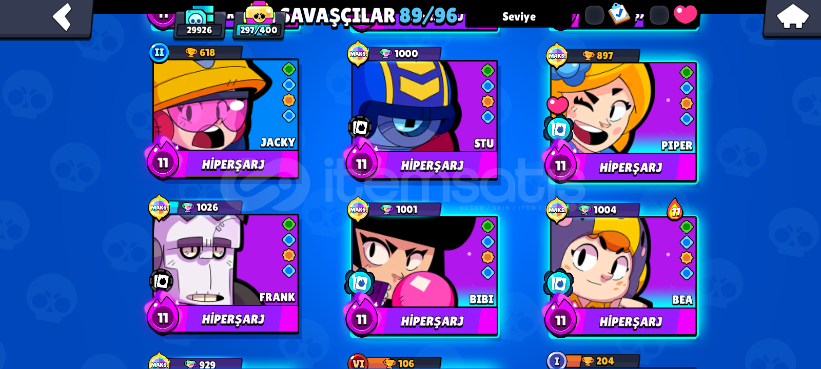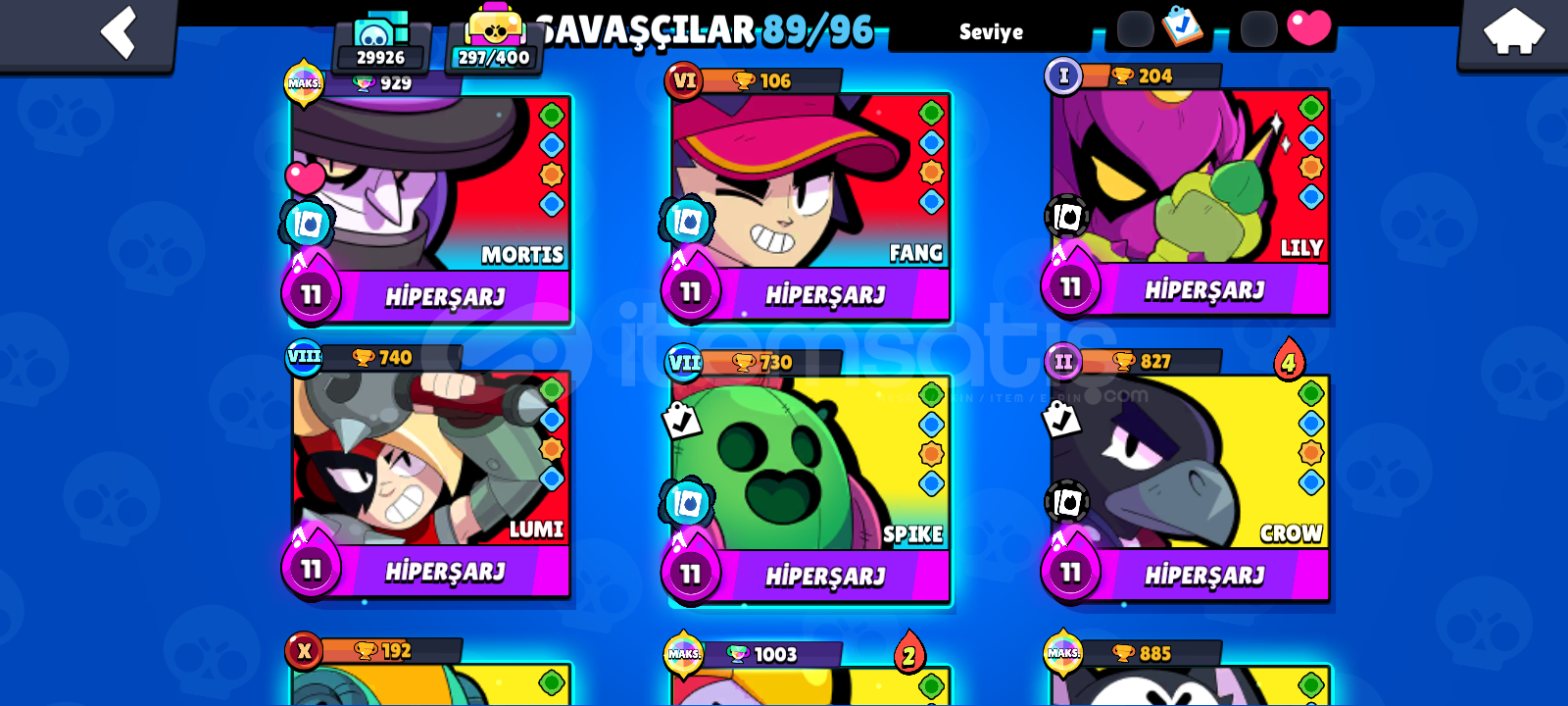 30K ⭐ 11 EFSANEVI KOSTUM⭐+200 KOSTÜM 😱tüm Pro pass lar açıldı ve şuanki Pro pass da açık8 10 Sezon Brawl bp açıldıŞuanki sezon da açık22-23 Max var19-20 hiperşarj vardırAlana şimdiden hayırlı olsun
