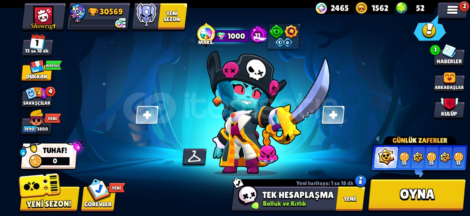 • Alacağınız Brawl Stars Hesabınızda en az 40 En Fazla 90 karakter Bulunur.