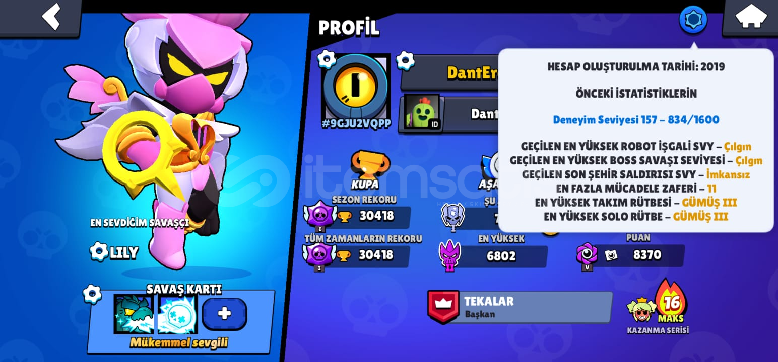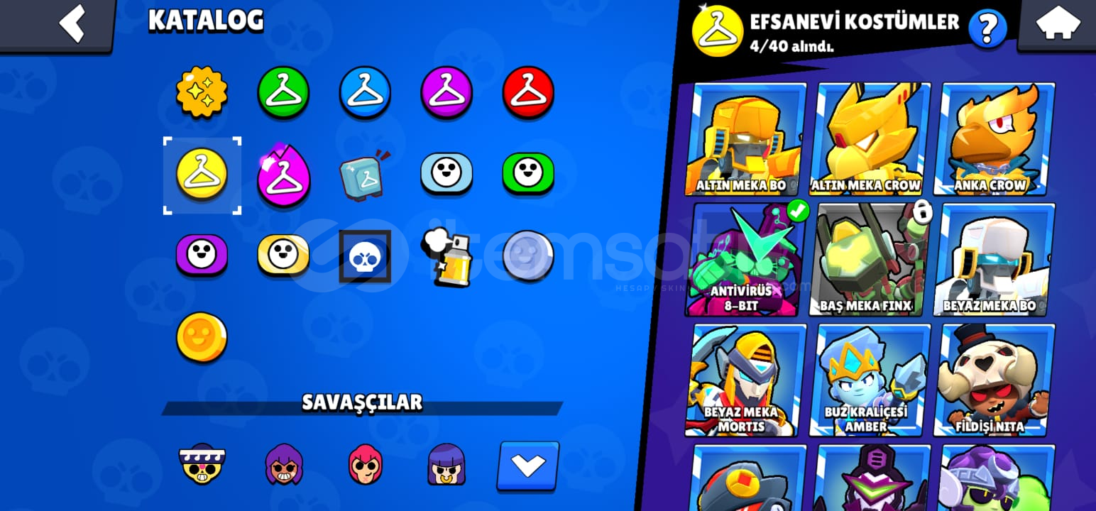 Hesaba ait detaylar fotoğraflardaki gibidir.E-Mail değişimi ile teslim edilecektir.Hesapta toplam 190 kostüm vardır>> 71-53-52-4-4-6Brawl Pass indirimi hala mevcutKupası düşük ve 2019dan kalma hesaptırOynamadığım için satıyorumHerhangi bir sorunuz olursa çekinmeyin.