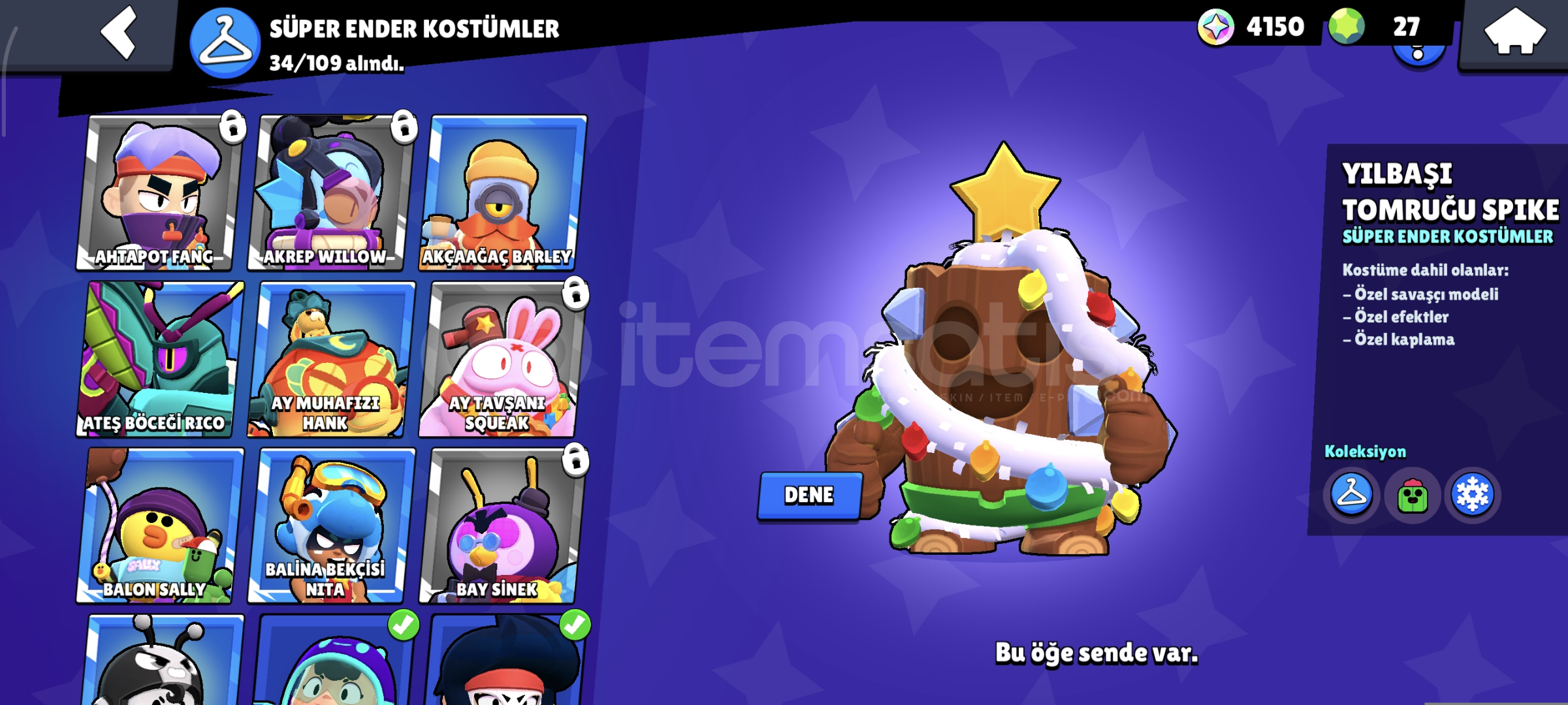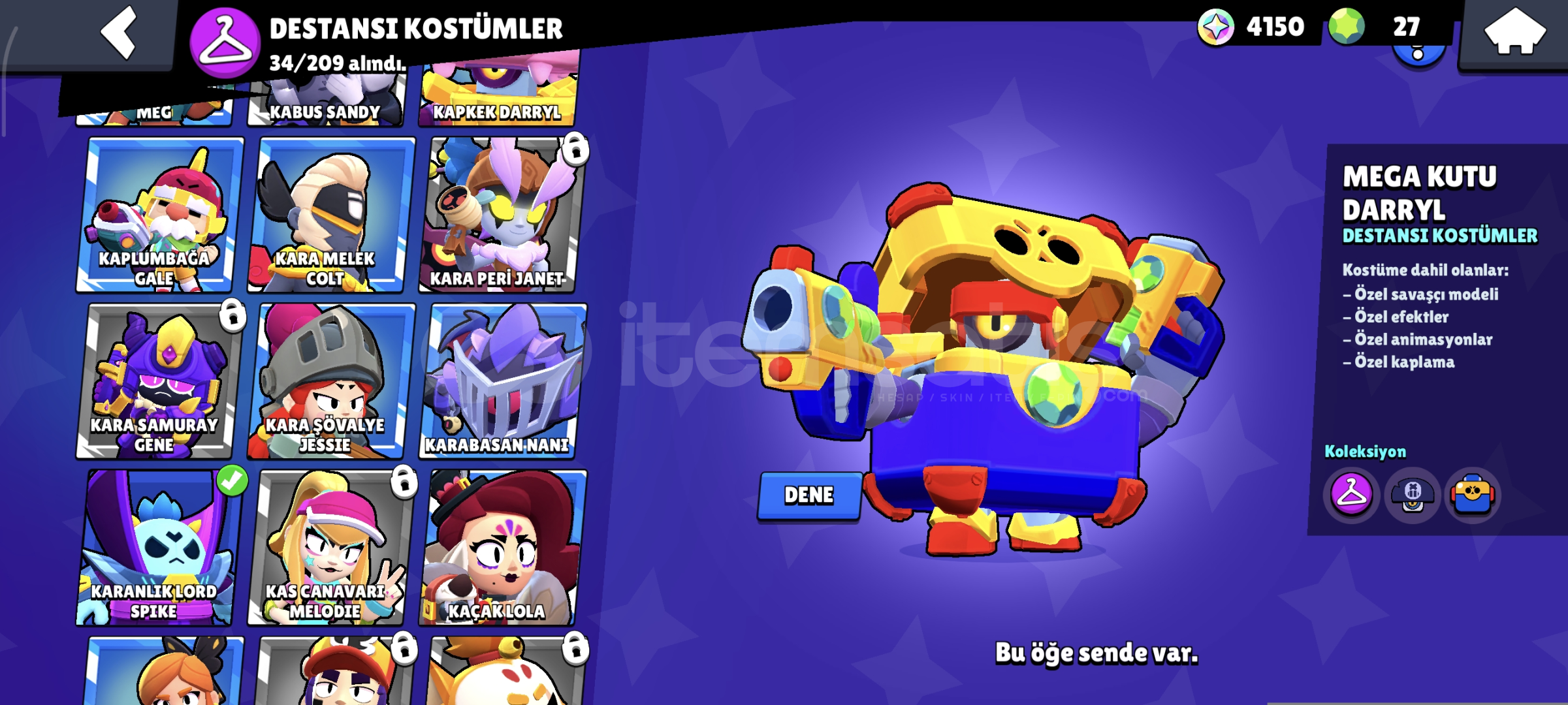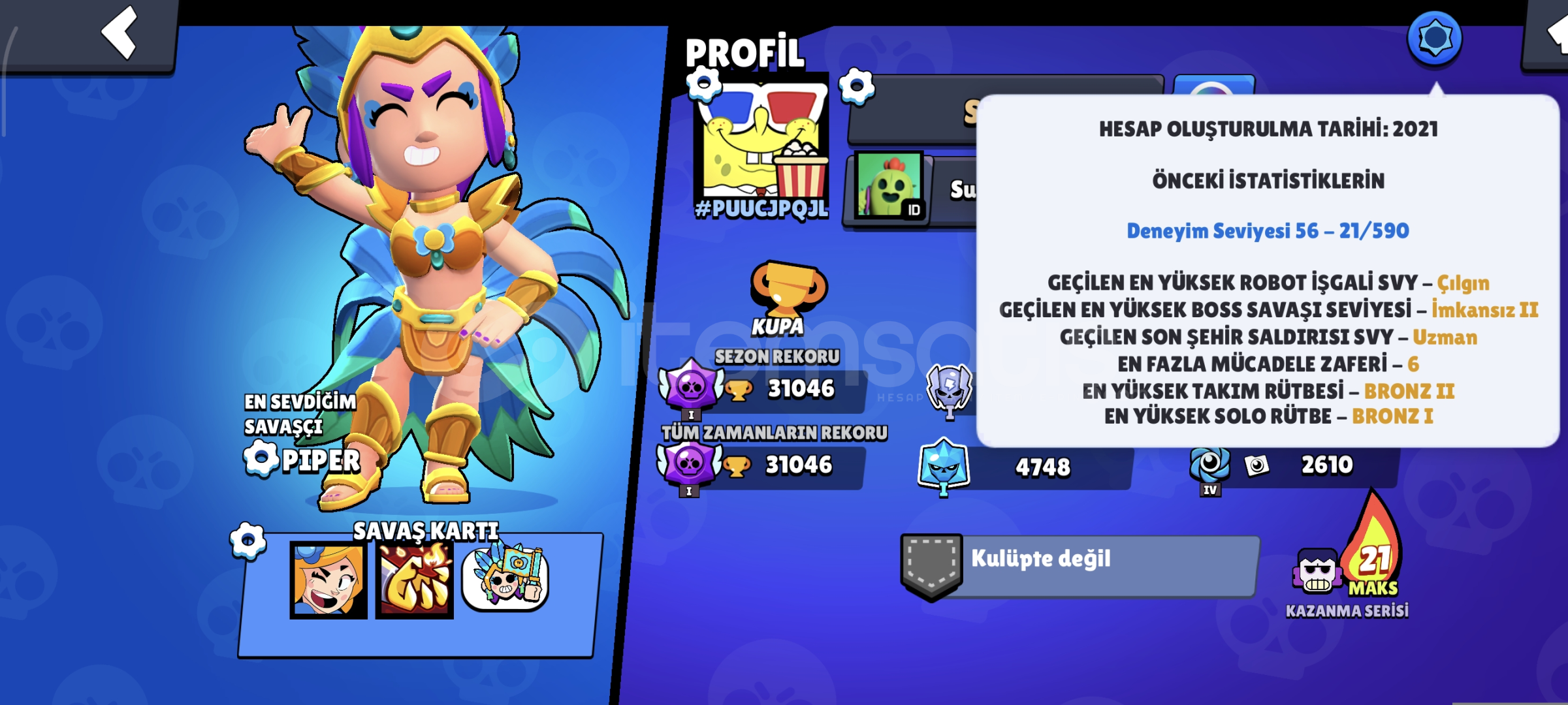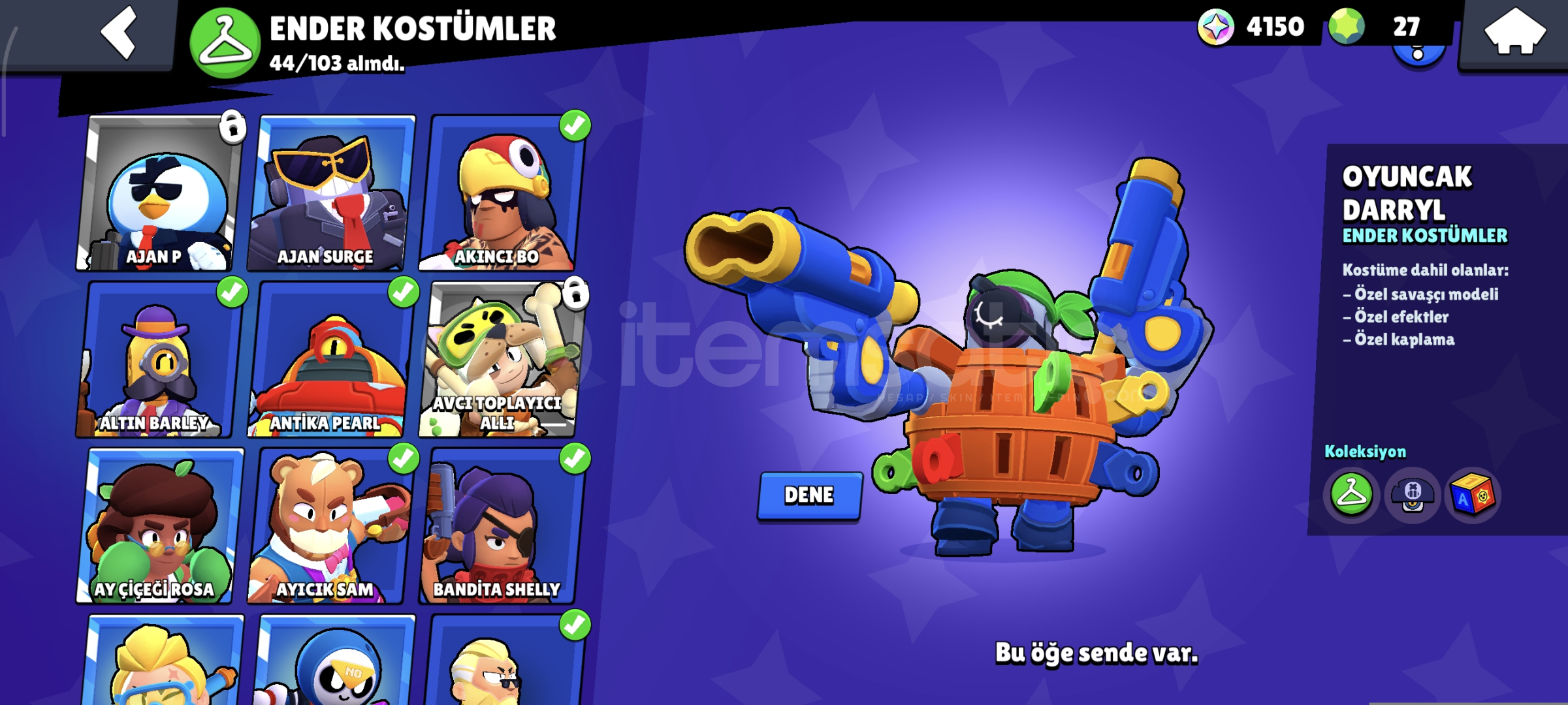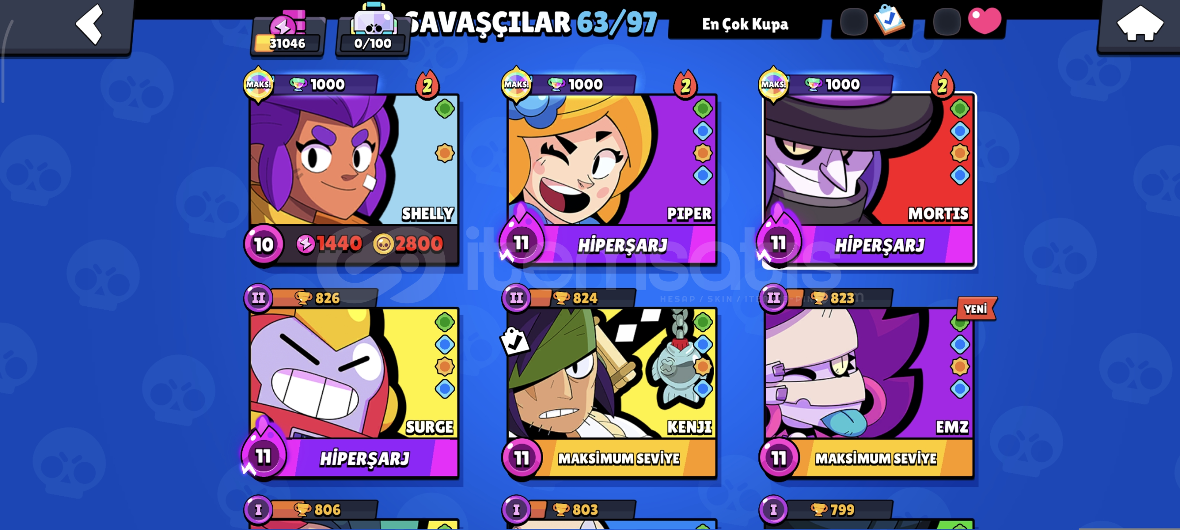44 ENDER. 34 SÜPER ENDER. 34 DESTANSI 3 GİZEMLİ 1 EFSANEVİ 4 HİPERŞARJ SKİNİ BULUNMAKTADIR. HESAP 2021 YILINDA AÇILMIŞTIR 31K KUPA