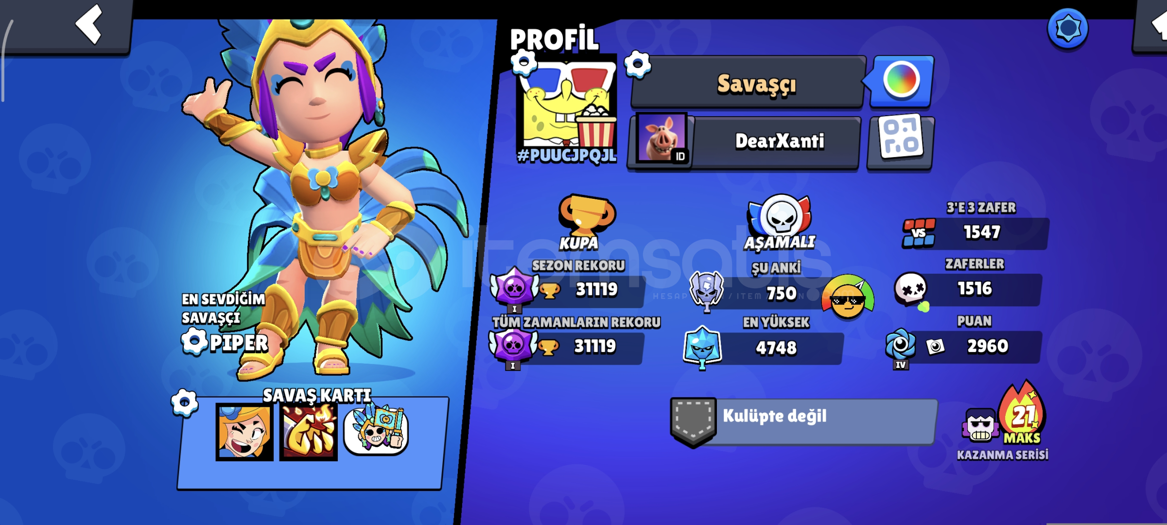 45 ENDER. 36 SÜPER ENDER. 37 DESTANSI 3 GİZEMLİ 1 EFSANEVİ 4 HİPERŞARJ SKİNİ BULUNMAKTADIR. HESAP 2021 YILINDA AÇILMIŞTIR 31K KUPA
