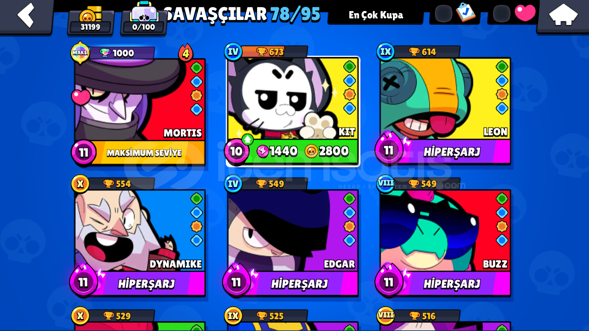 HESABIN 31 K KUPASI 78 KARAKTERİ VE 117 SİKİNİ VARDIR 4 SEZON BRAWL PASS ALINMIŞTIR HESAP 2018 YILINDA KURULMUŞTUR. ALAN KİŞİYE HAYIRLI OLSUN