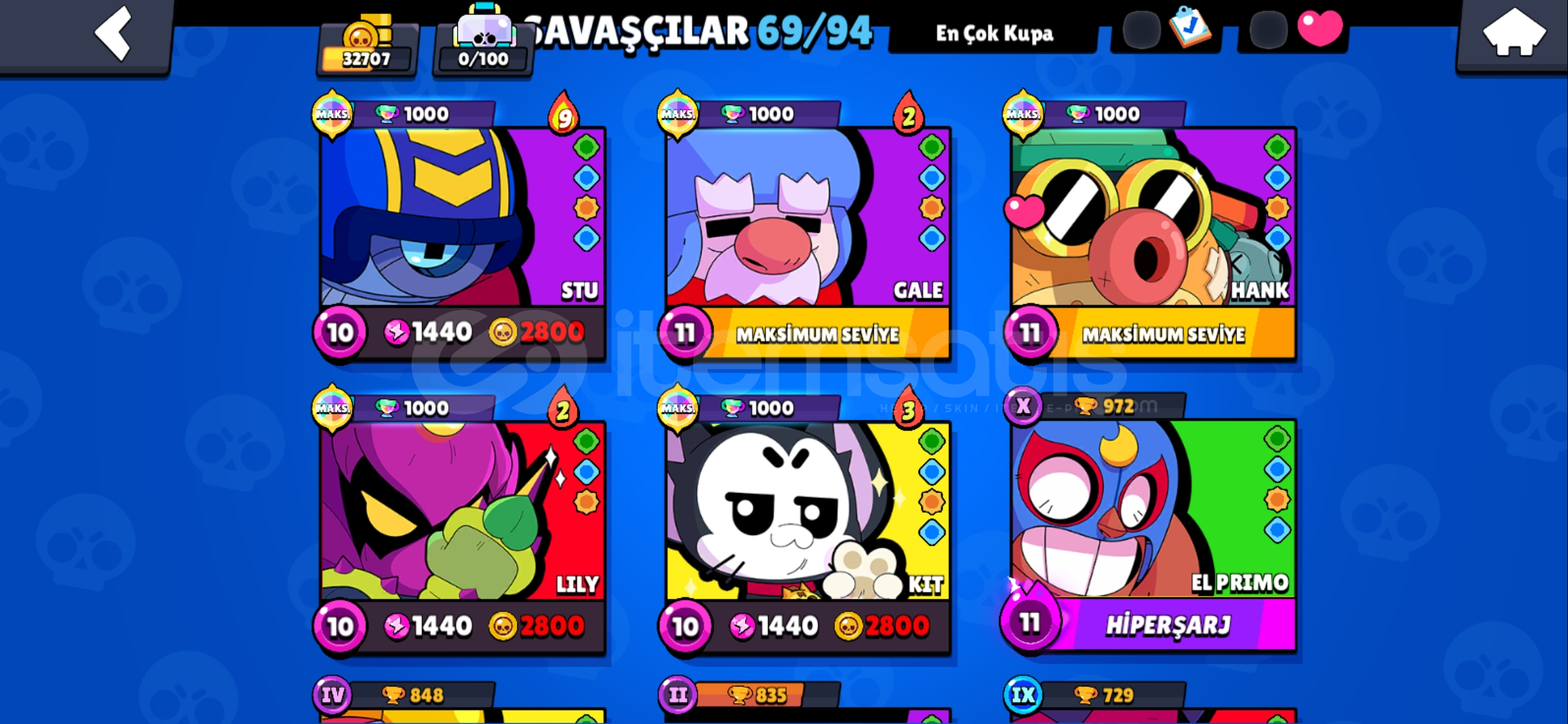 32 bin kupa 5 yıllık koca bi emek içinde cok degerli kostumler vardir ve 5 tane 1000 kupasi vardir