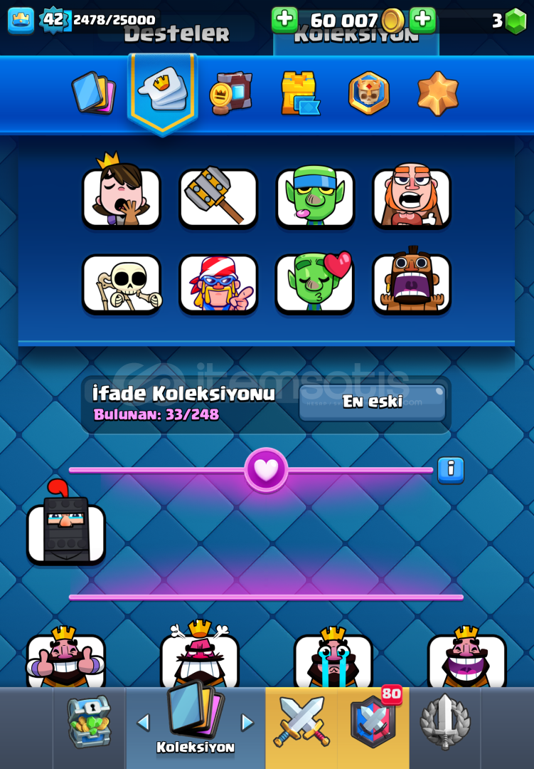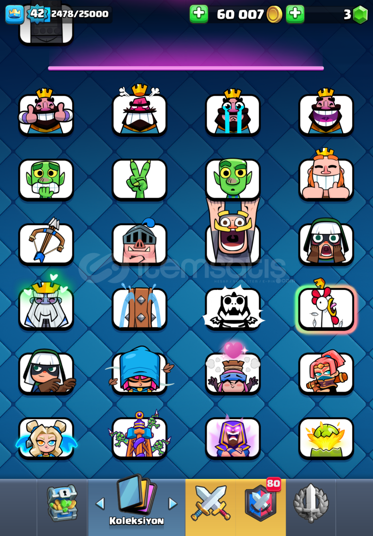 -HESAP 32100 KUPA OLUP 237 ELMAS VARDIR ayrıyetten 7300 mücevher vardır-Clash Royale hesabı 8200 kupadır neredeyse bütün kartlar açıktır isim değiştirme ücretsizdir-Hesapta 38 Destansı,57 Süper Ender kostüm,44 Ender,4 efsanevi,2 gizemli küstüm bulunmaktadır-13 Max karakter vardır -2019 hesabı(1.yıl dönümü amblemi vardır -Ve diğer detaylar fotoğraflarda mev...