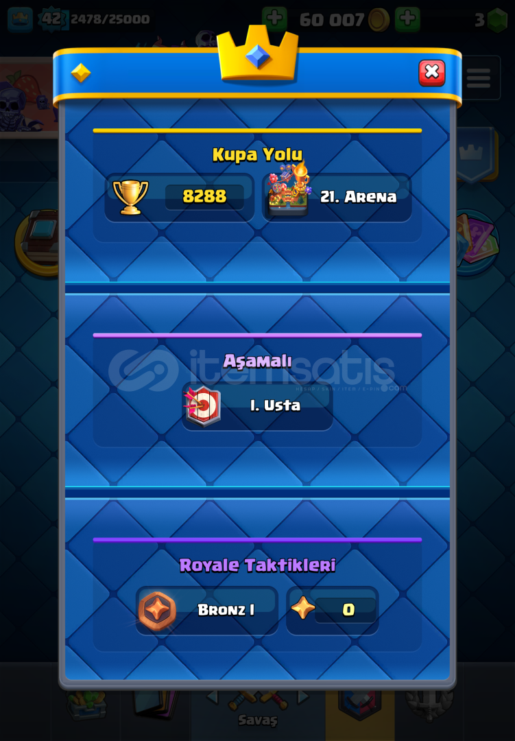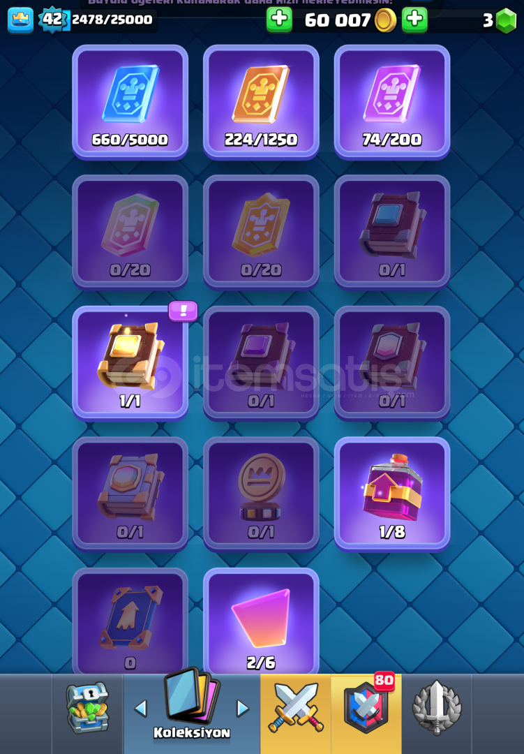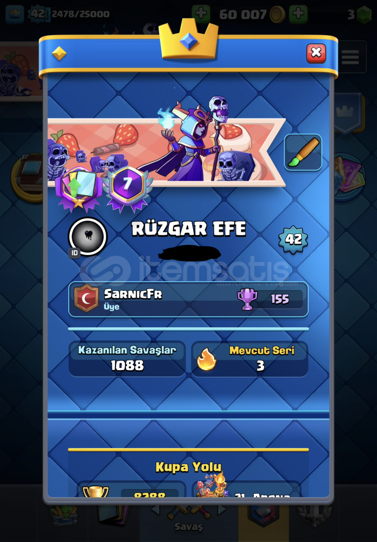 -Clash Royale hesabı 8200 kupadır neredeyse bütün kartlar açıktır isim değiştirme ücretsizdir