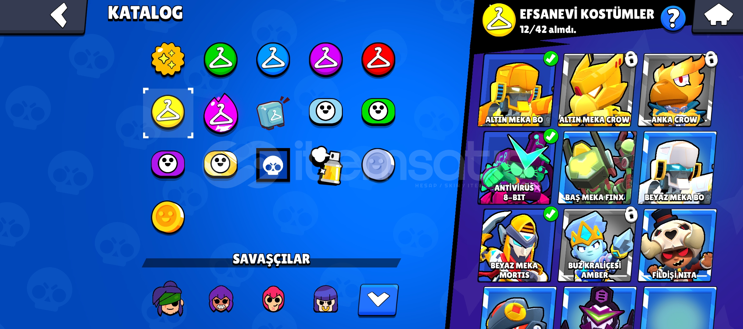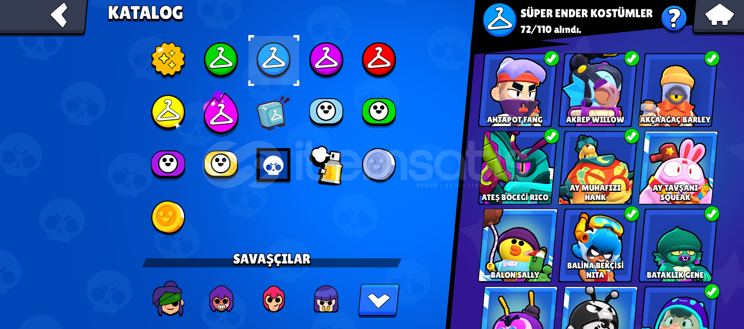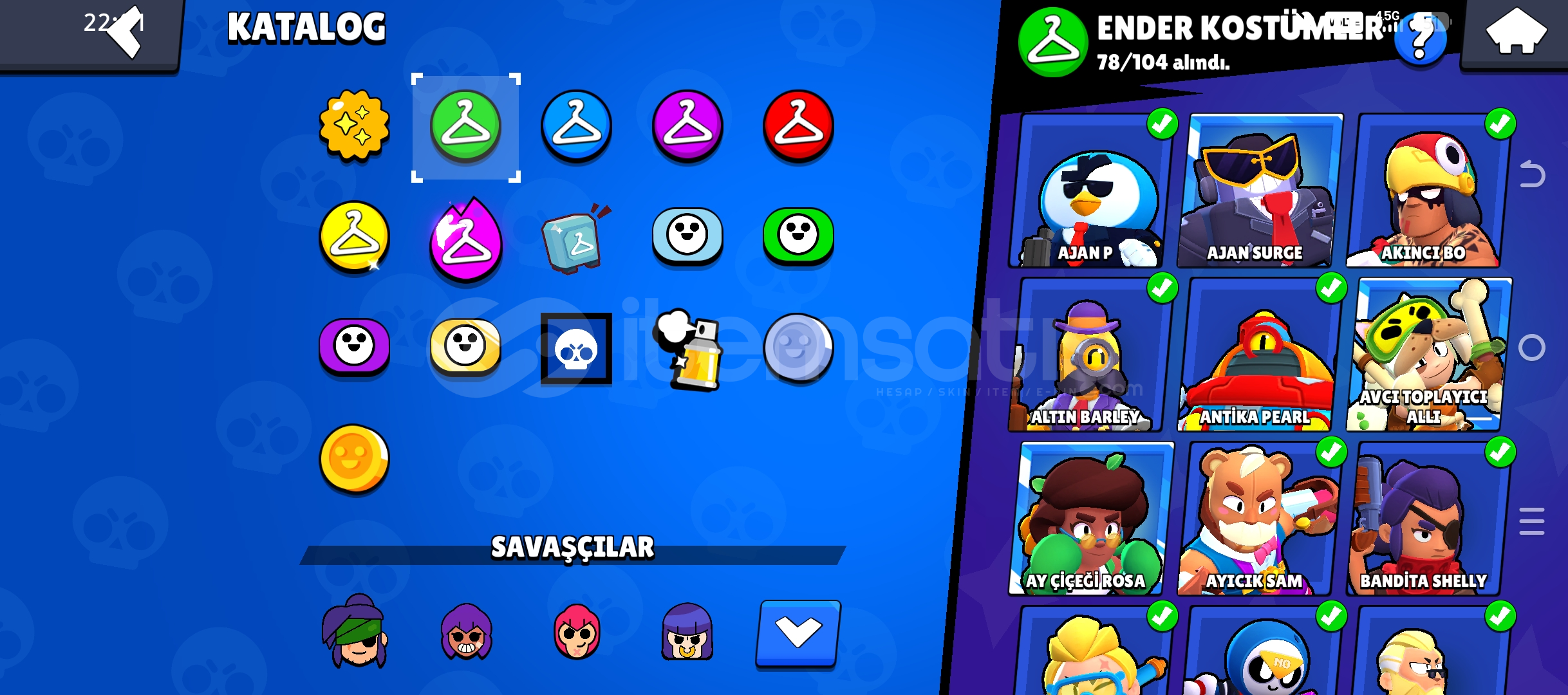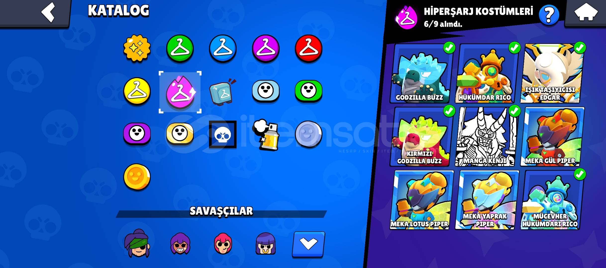 33.160 KUPA271 KOSTÜM 78 ENDER KOSTÜM72 SÜPER ENDER KOSTÜM 96 DESTANSI KOSTÜM 7 GİZEMLİ KOSTÜM12 EFSANEVİ KOSTÜM6 HİPERŞARJ KOSTÜM84 KARAKTER 20 HİPERŞARJ22 MAX SAVAŞÇI