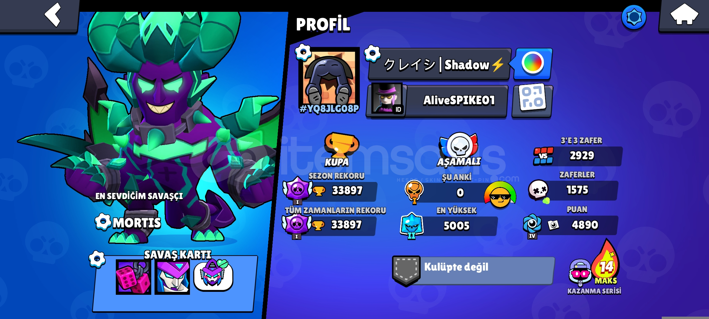 Nadir olan çoğu kostum hesapta vardir mortis main hesap gayet ucuz butce dostu hesaptaki kostumler ;