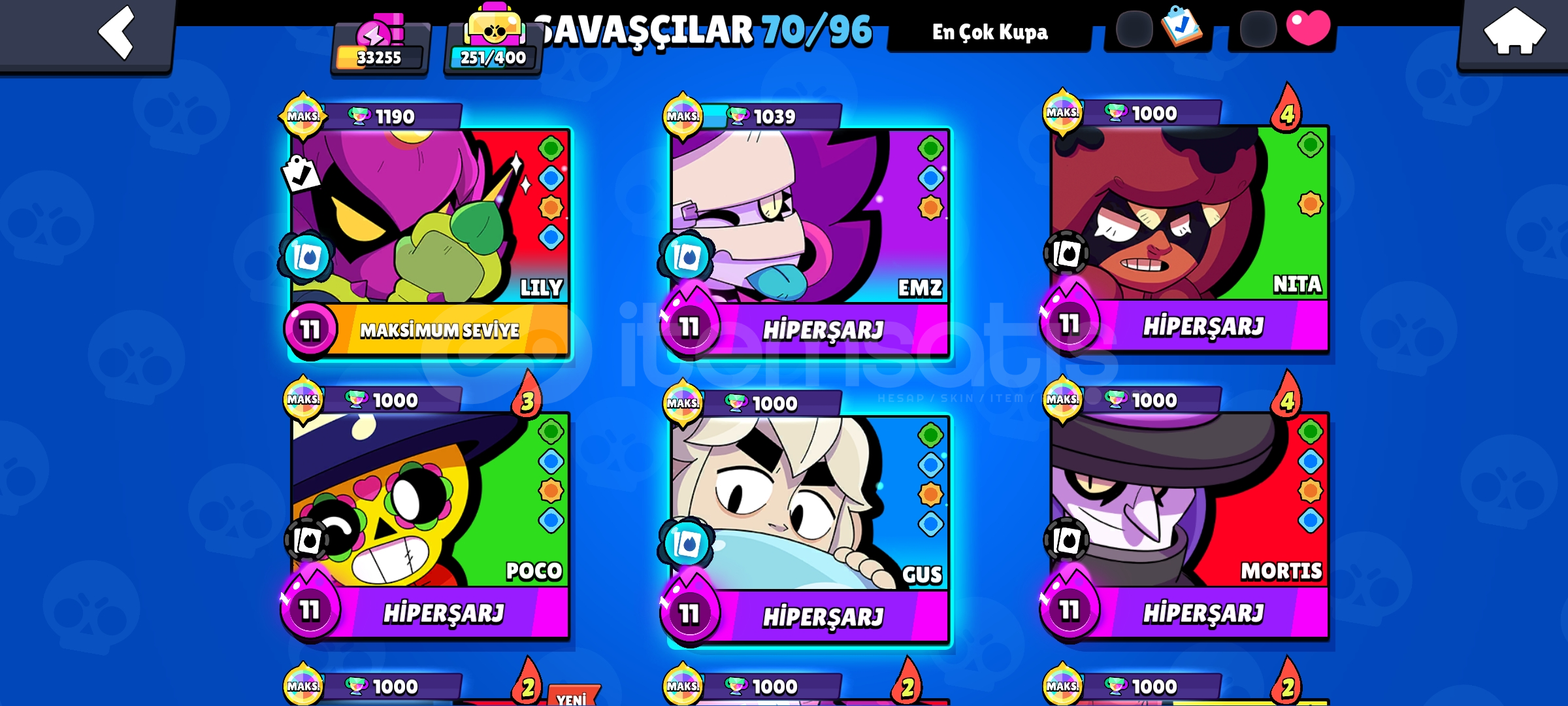 İhtiyaçtan dolayı satıyorum 3800 Kupa Cr hesabı 70 Karakter 1190 Kupa LilyKalleş Mükemmel Sevgili KorkusuzKayıp #ağlayınEl MariachiRıp 7 adet unvan vardır