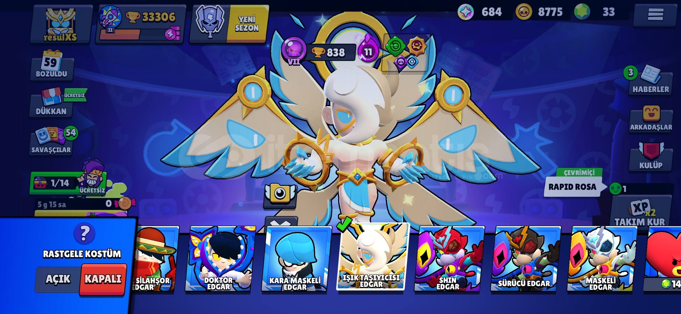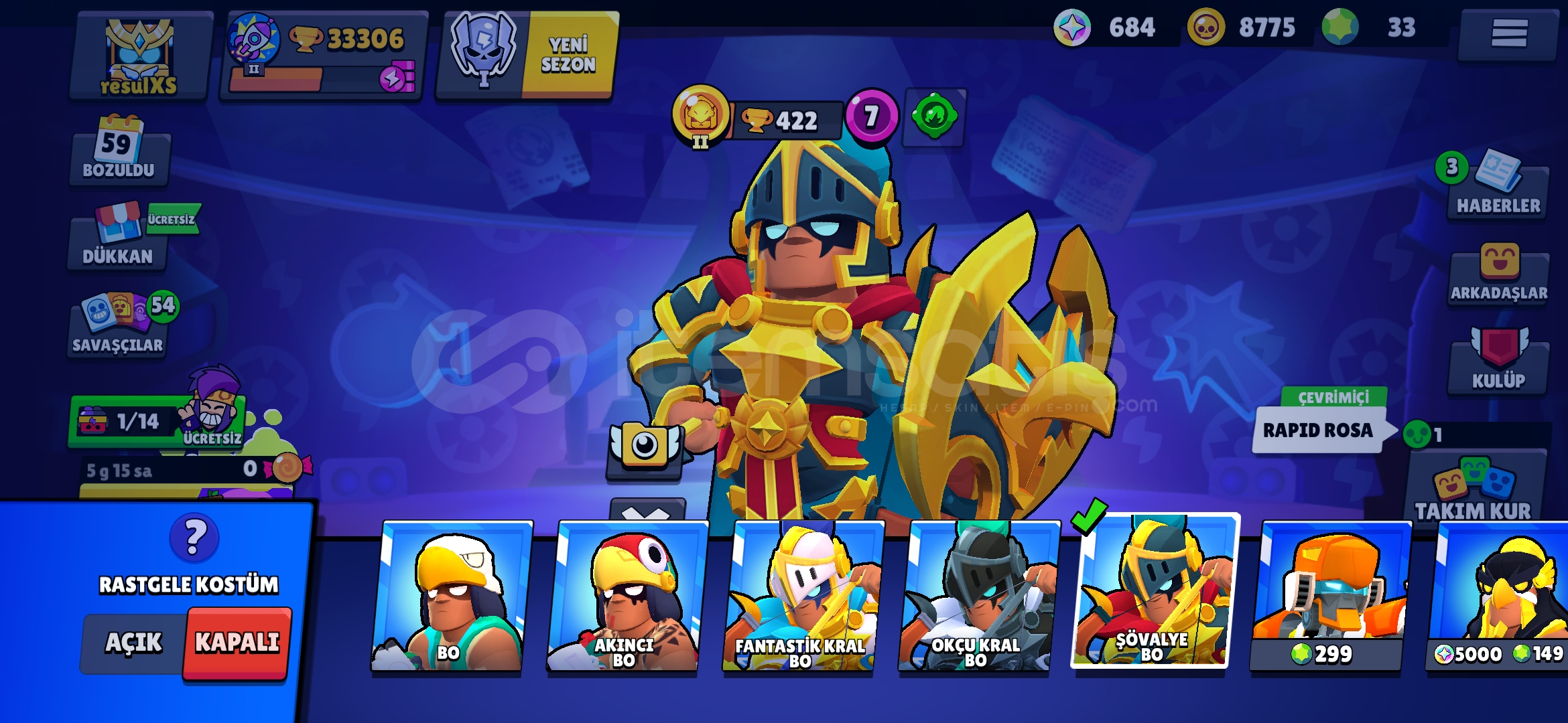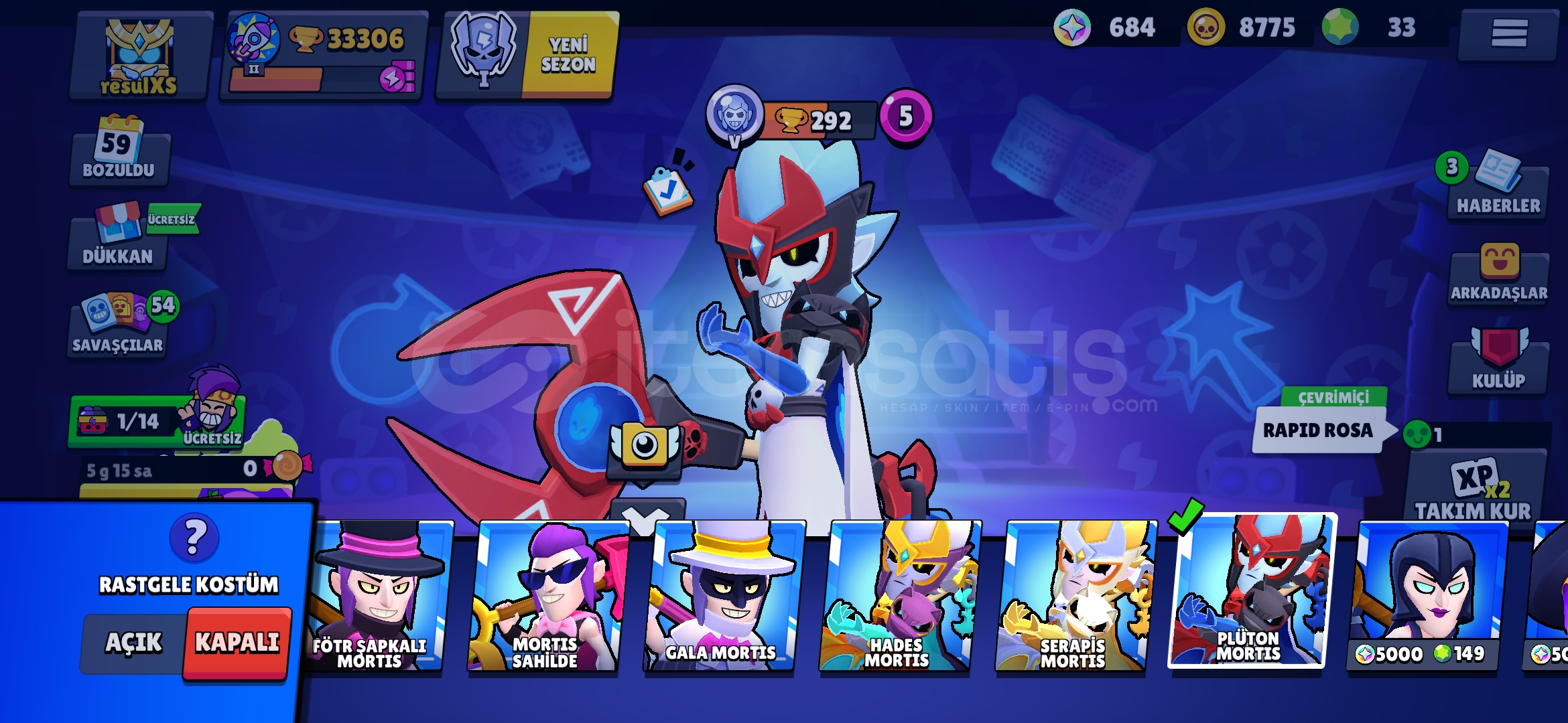 33K KUPA 185+KOSTÜM 3X BRAWL PAS PLUSLU (SONDA GÖSTERDİM)HESAP KORUMASI KAPALI 79 KARAKTERGLORİXPMXYRA GÜVENCESİ