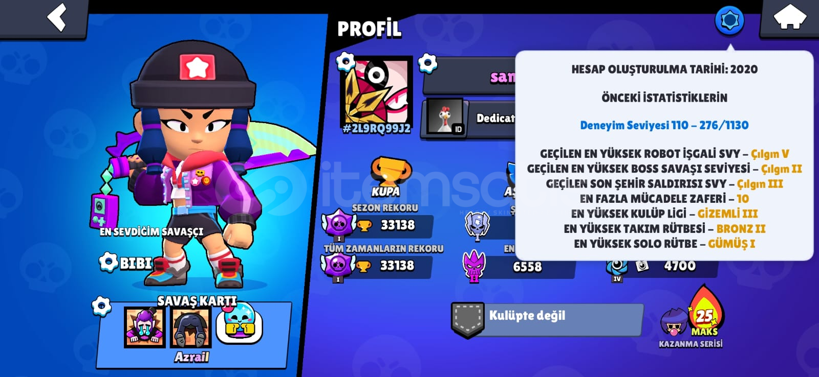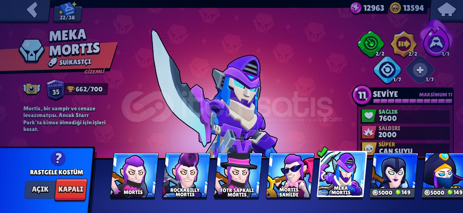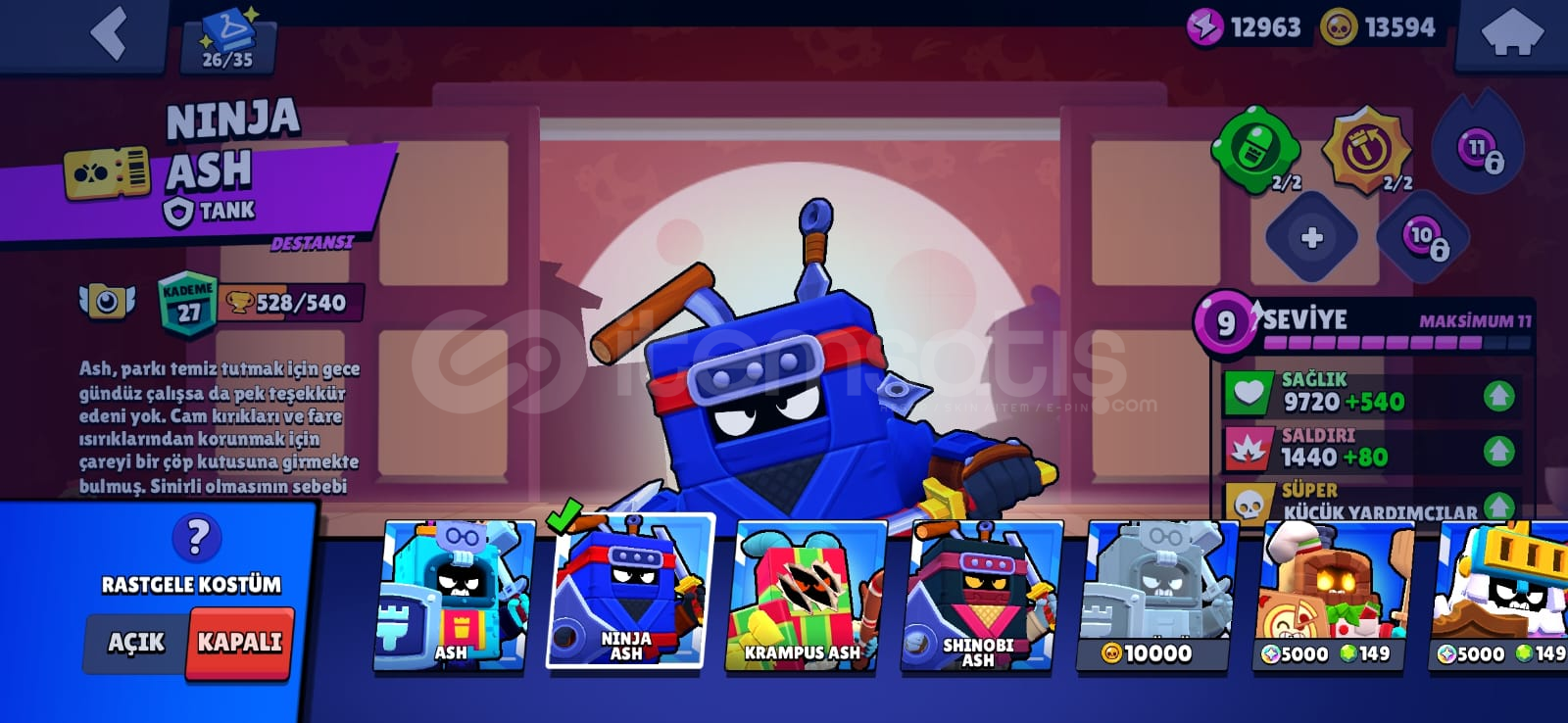 hesapta;-2 brawl pass alınmıştır-83 karakter vardır42 ender45 süper ender62 destansı4 gizemli4 efsanevi3 hiperşarj skin bulunmaktadır-dilerseniz hesap ismini ücretsiz değiştirebilirsiniz-2020 hesabıdır-hesaba toplamda 600 tl civarı para yatırılmıştır-238 koleksiyon rozeti bulunmaktadır-mail olarak teslim edilecektir dilerseniz sonradan maili değiştirebilirsiniz alıcısı...