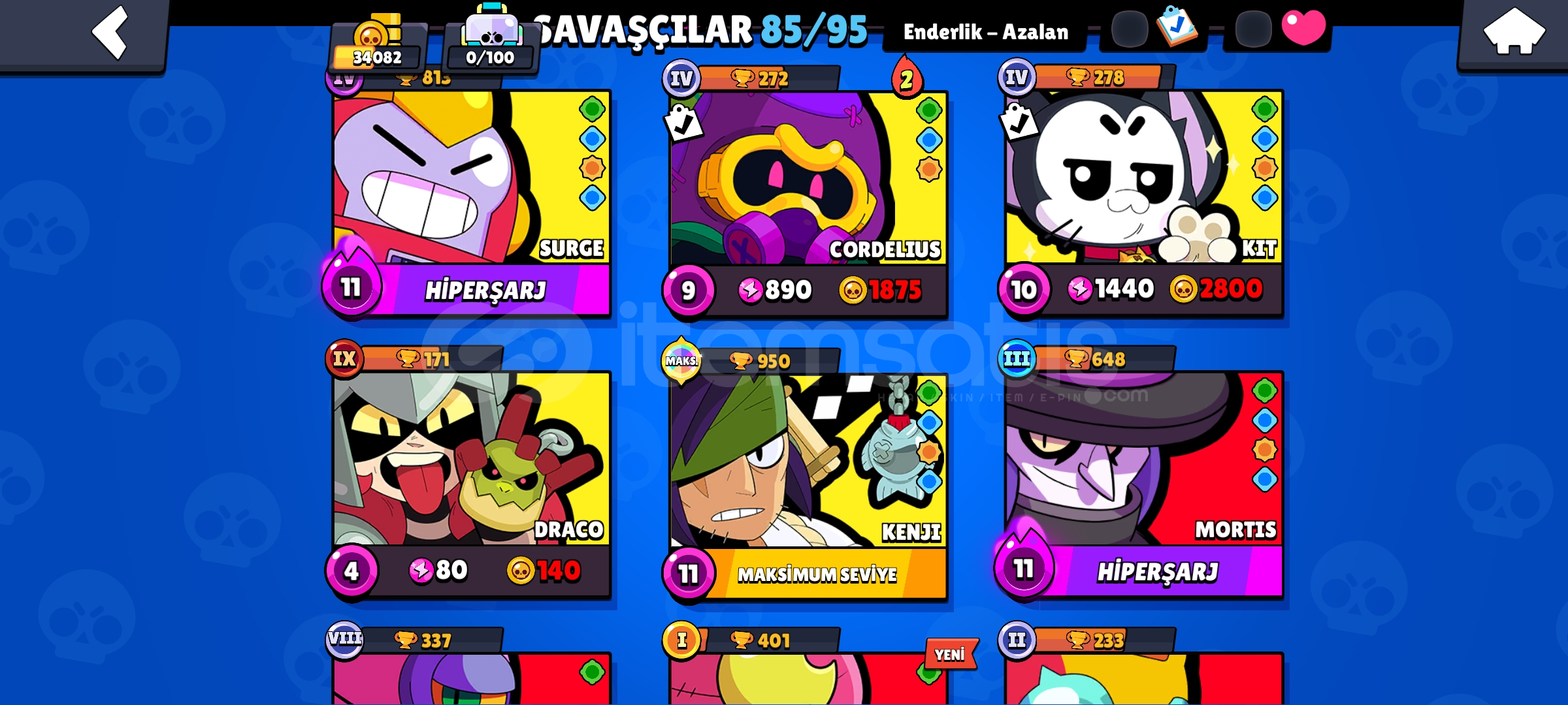 🀄85 karakteri🏆 35K kupa🟨11 efsanevi🟥27 gizemli🟩🟦🟪Geriye kalan Ender Süper Ender destansı hepsi vardır🎇3 tane 1K Karakter🎩164 Tane kostüm vardır💯 Güvenli🕘 9 saat içinde Teslimat✅Hesap sorunsuz Herşeyi tamdır🏅BU FIRSAT KAÇMAZ🫵Hafta içi fazla müsait olmayabilirim lütfen bekleyiniz