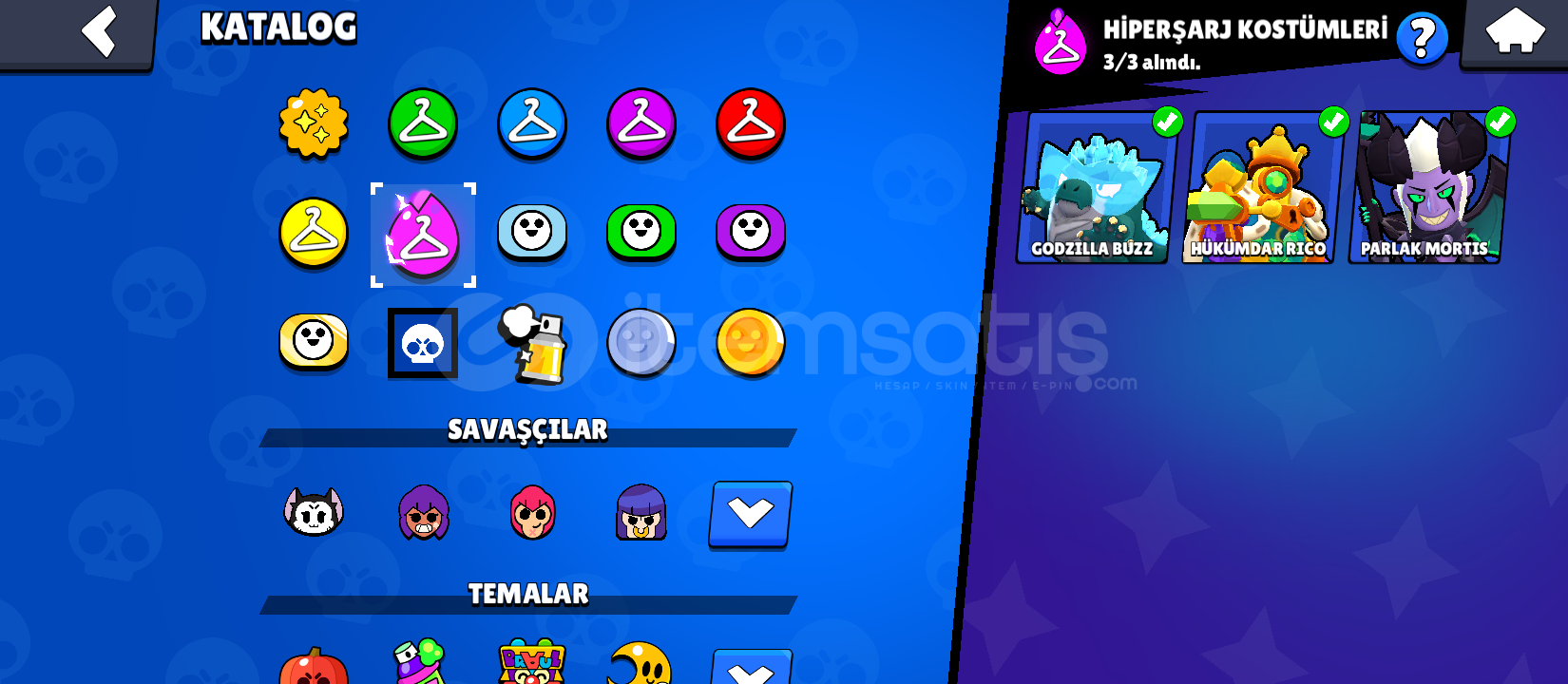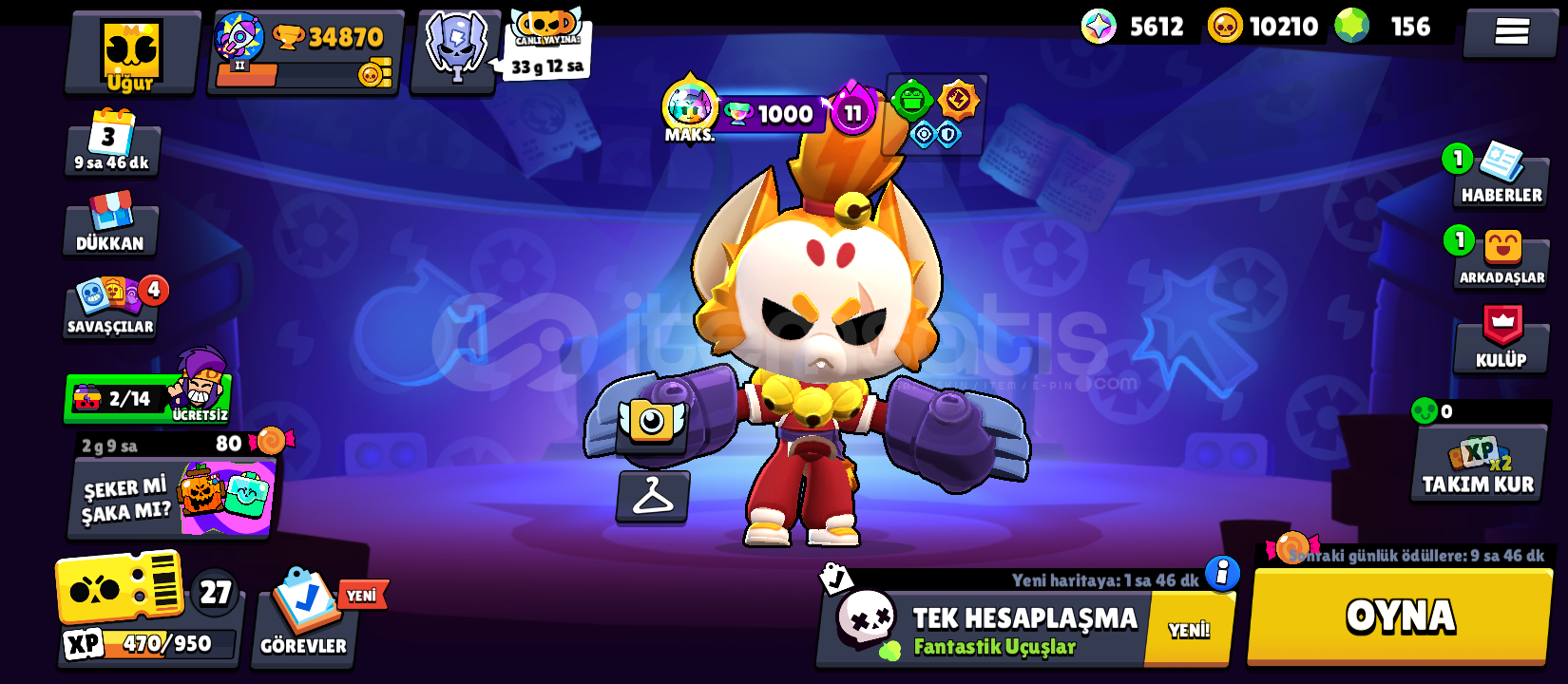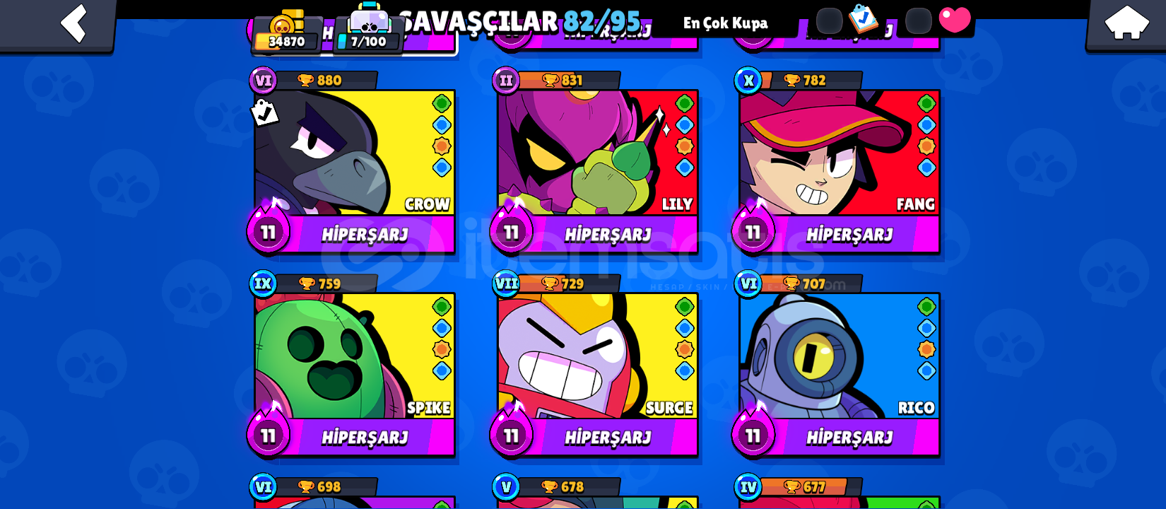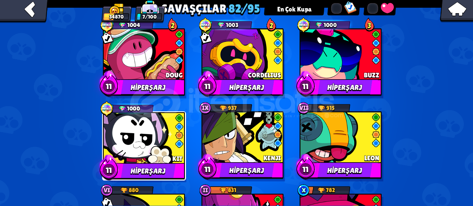 34000 kupa 82 karakterBütün efsaneviler14 Hiperşarj153 taş10000 k altın5000 puan3 Tane Hiperşarj kostüm (Parlak mor...