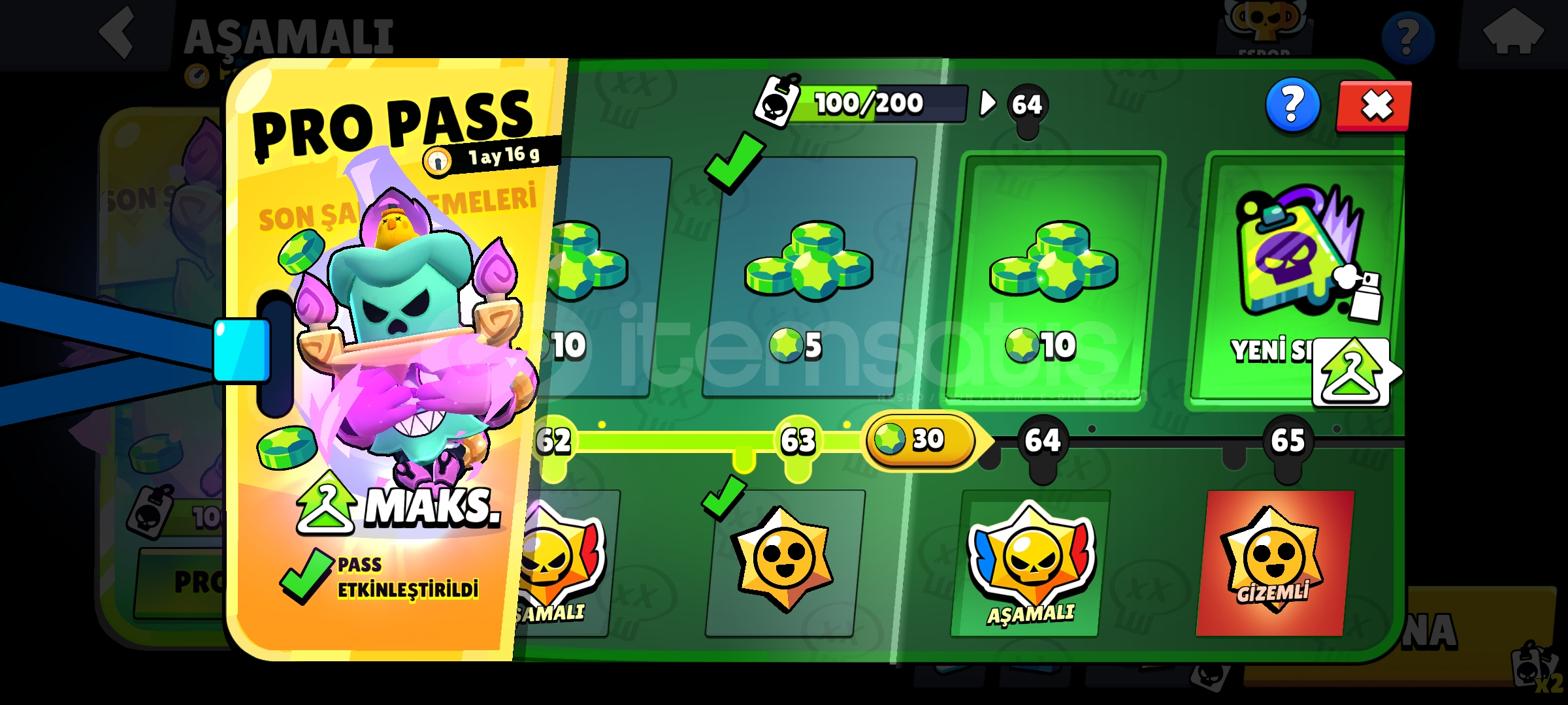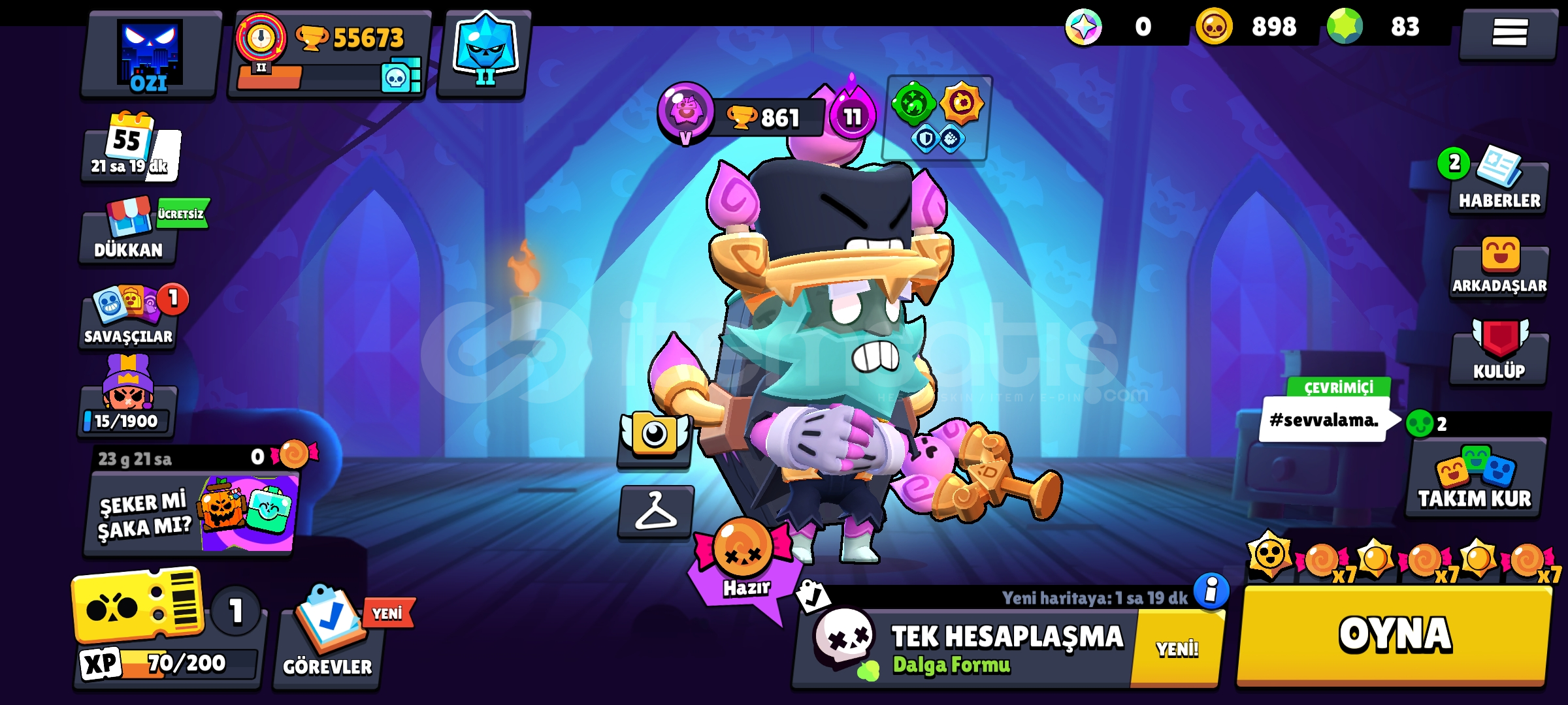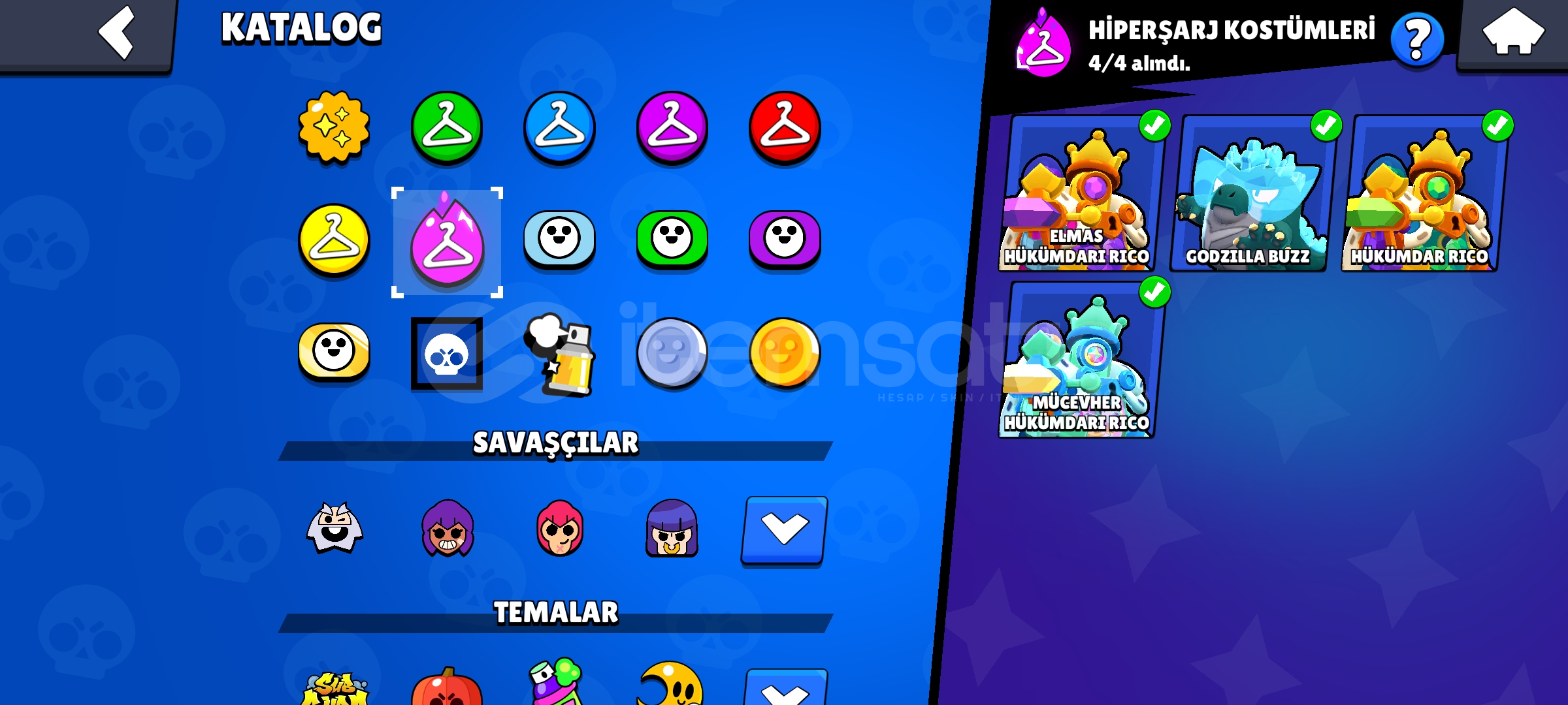 48 tane hipersarj karakter var 8-10 tane Max karakter var kalan karakterlerde 10-9-8-7 level en düşük seviyeli karakter bile 7 level onceden asamalida efsanevi olmuş (8800 puan )aşamalıdaki brawl passta açık 94/95 karakter Hipersarj kostümlü kenji Thor bibi Meka crow meka mortis gibi efsanevi kostümler Var Satürn şöhreti III 1-2k kredi olursa ismini bilmiyorum ama atlıyor İşte Anladınız siz bütün karakterlerde çok iyi kostümler var 133 tane destansı kostüm Var düşünün Yani Brawl passlar falan fotoğraflar yap taze 5-10 dakika önce çektim hesaptan daha detayli bilgi almak istiyorsanız yazabilirsiniz Ciddi Alıcıysanız Oyuna Girip Hesabın Herseyini Detaylı gösterebilirim kostümler vb Sorunuz olursa Çekinmeyin.