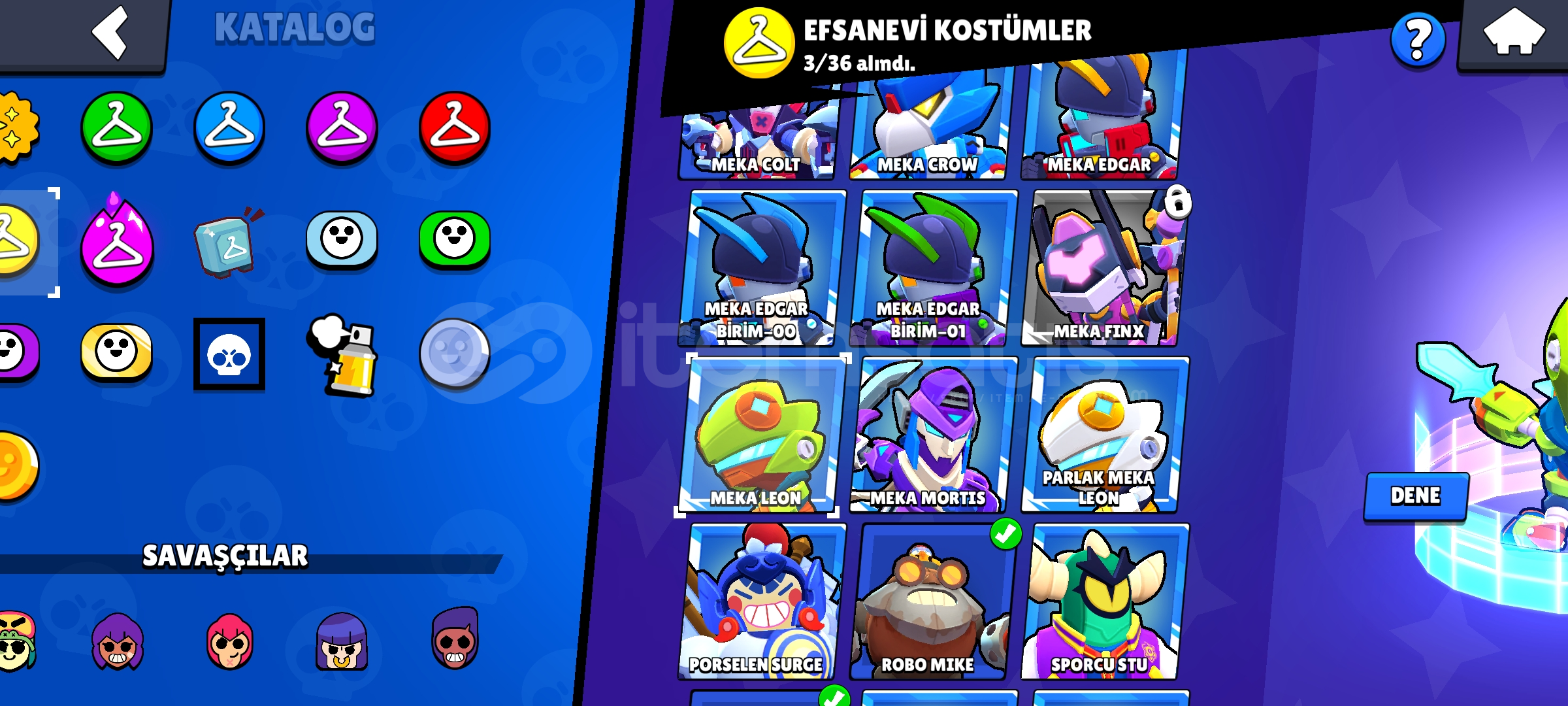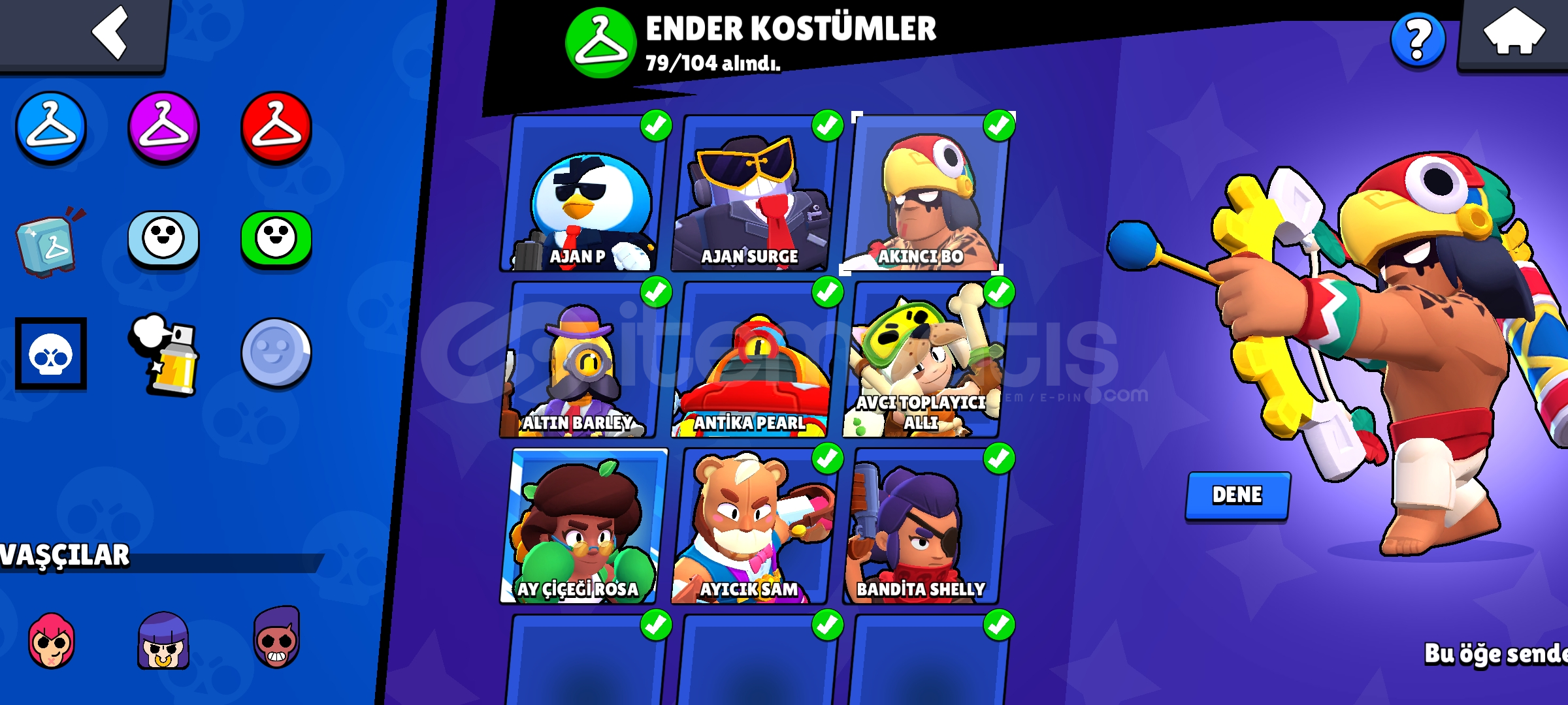 8 Hipersarj 10 efsanevi karakterKaze Açık 34500 kupa83 karakter 3 Efsanevi Kostüm Robo Mike ,Meka Cilt Sürgü Işık yılı 6 gizemli Kostüm Küflü mikeOnyüzlü gromSirk sunucusu byronSquad buster shellyŞarkı ustası hani50 Destansı Kostüm 57 Süper Ender kostüm 79 Ender kostüm 3 hipersarj kostüm