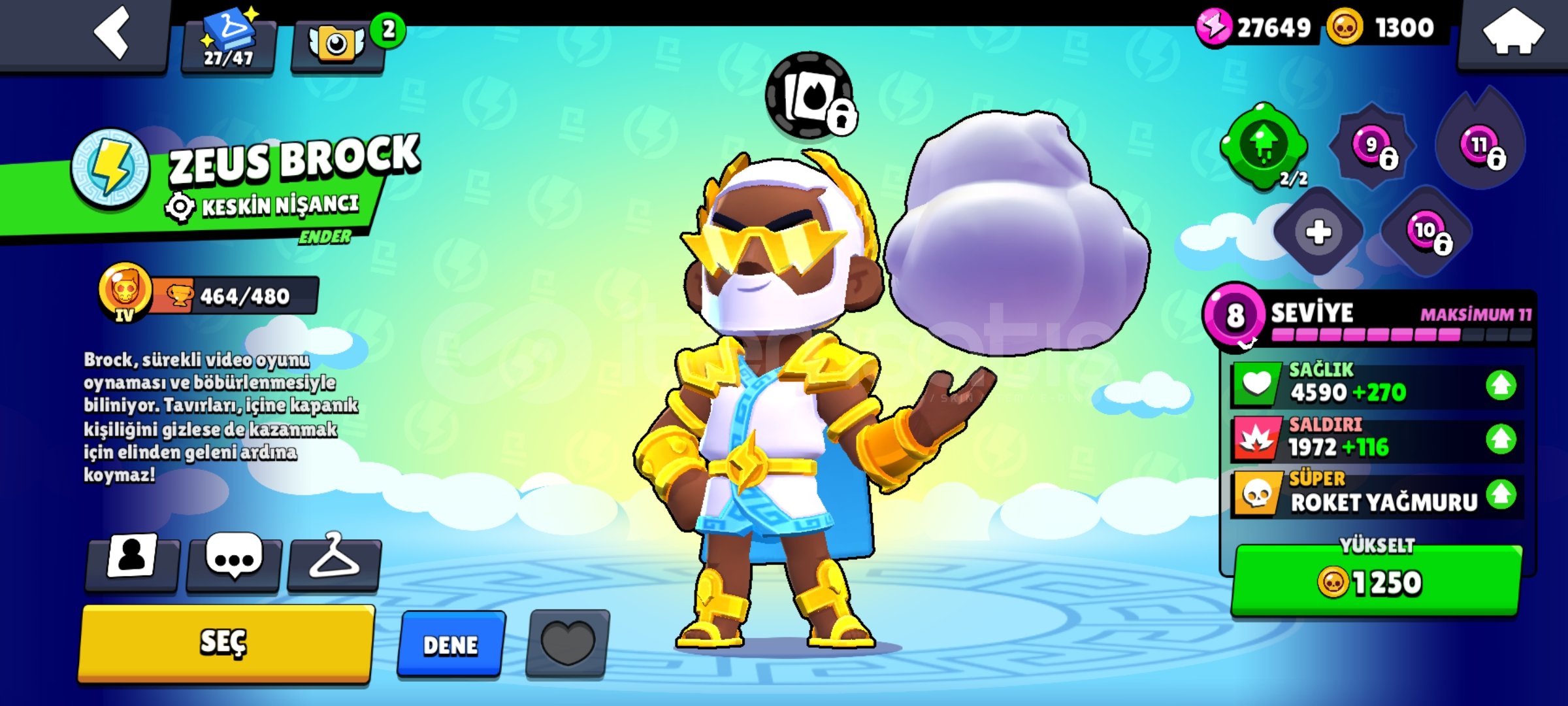 Önceki sezonlar full olarak brawl pass ler açılmıştır ve para yatırılan bir hesaptır.Kostümler:78 ender66 süper ender79 destansı 11 gizemli6 efsanevi4 hiperşarj