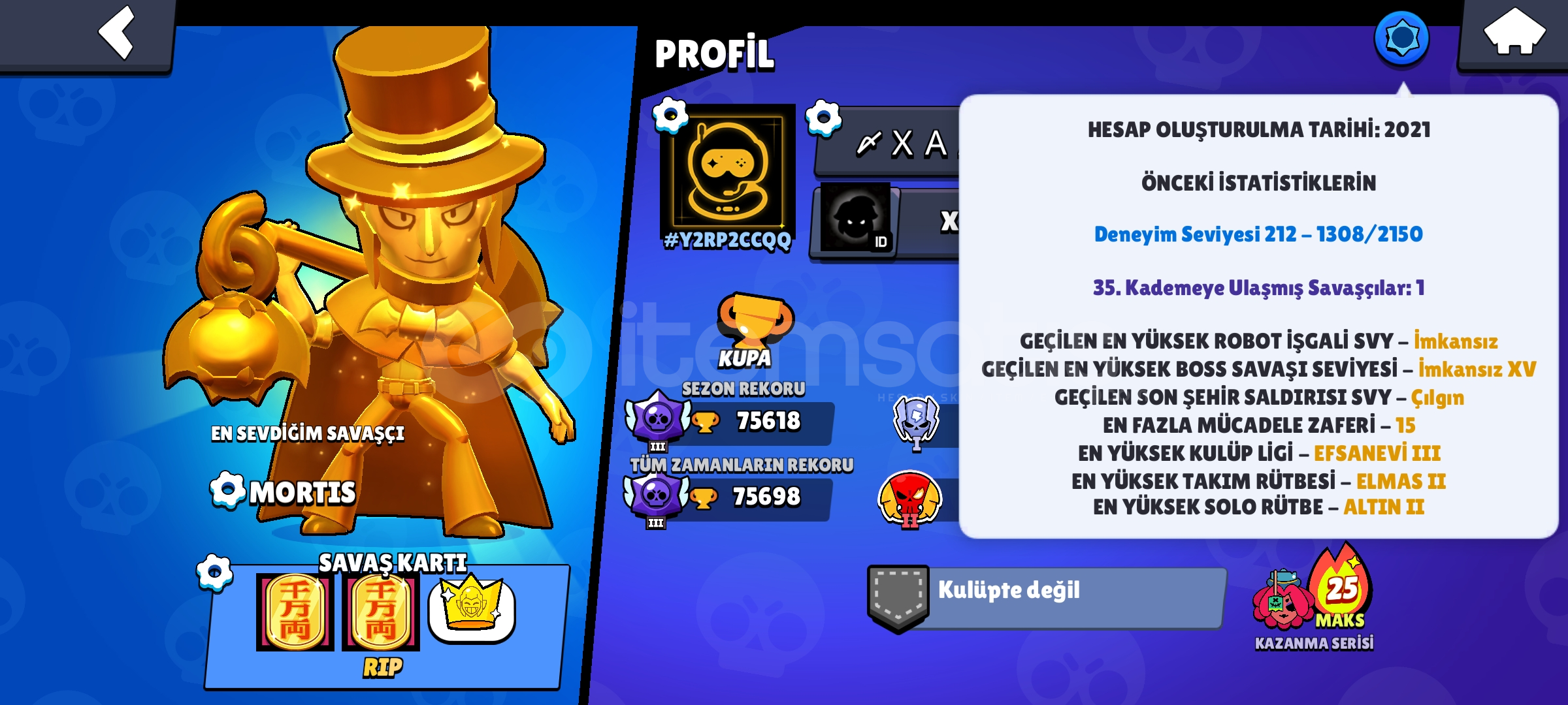 75k kupası var 600 e yakın elmas 20k ya yakın mücevher var istediğiniz alabilirrsiniz pazarlık yapmam