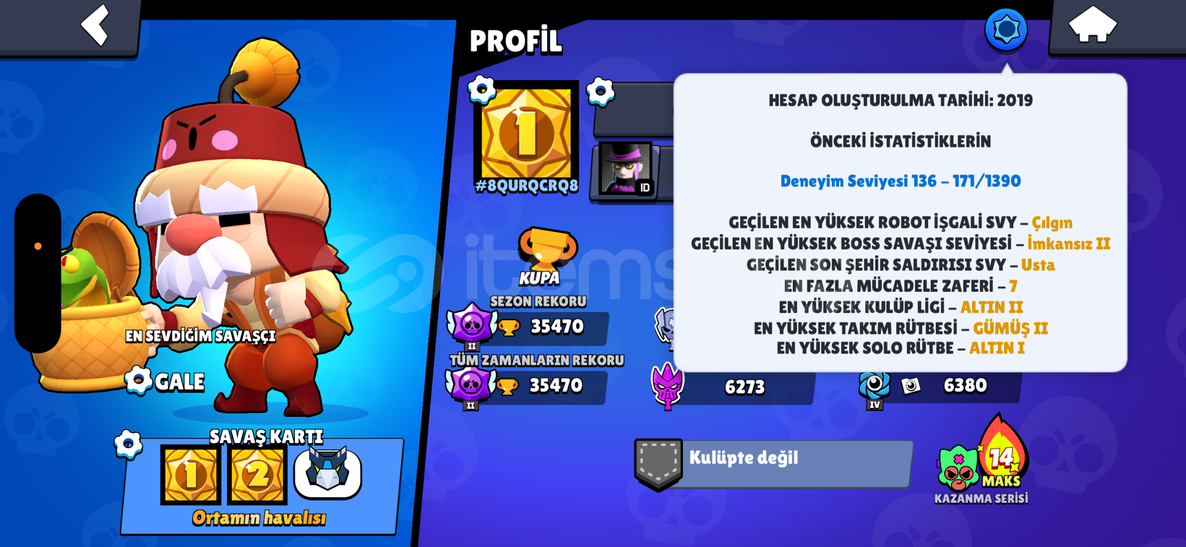 85 karakter35470 kupa1. Sezon 2019 hesap Ilk sezon brawl pass acilmisEnder 72Super ender 45Destansi 44Gizemli 7Efsanevi 4Hipersajr 1Gumus 1Altin gumus 119777 altin49 tas8764 mucevjerhesap koruması aktiftir ama 365 garanti sağlıyoruz bizler
