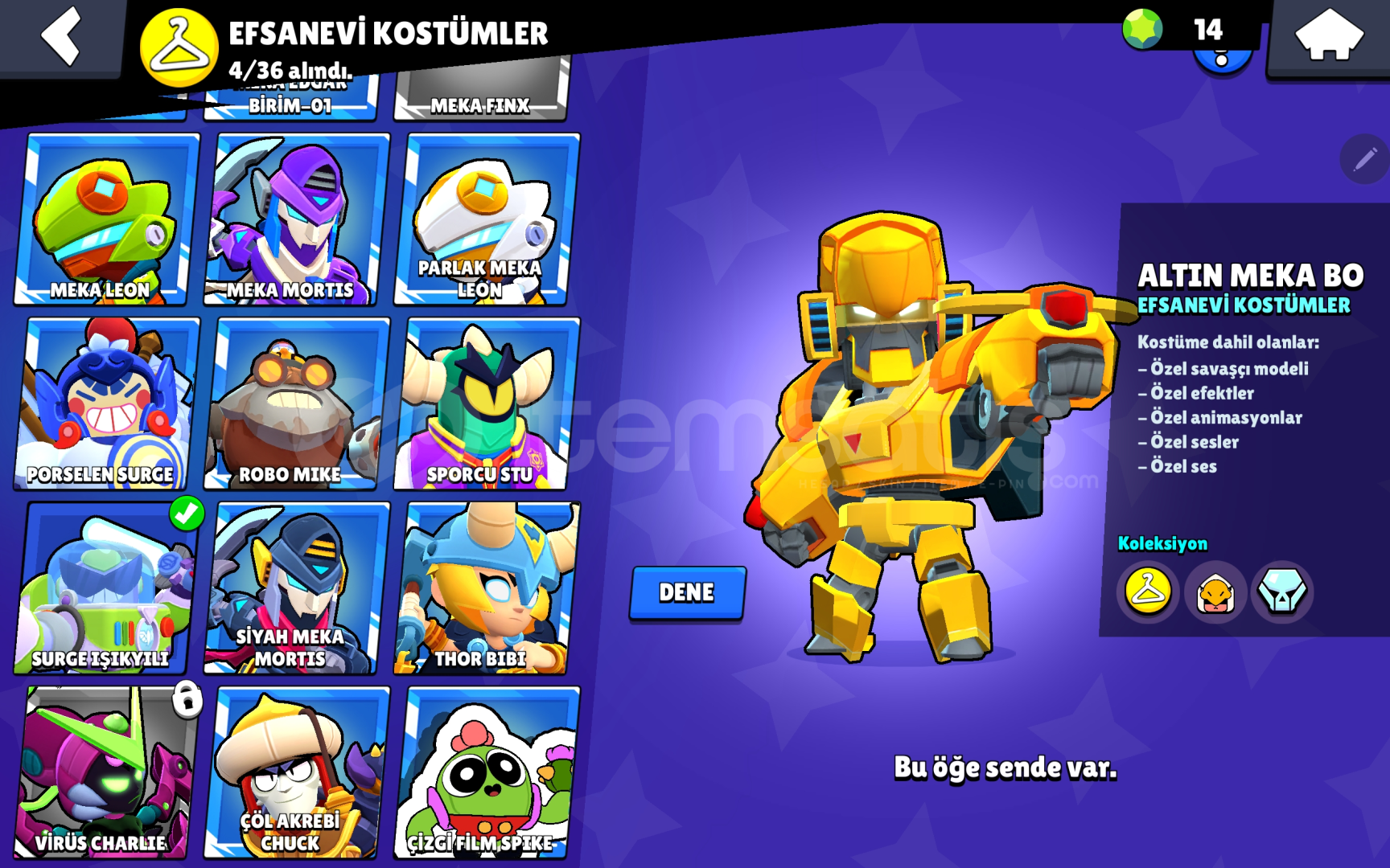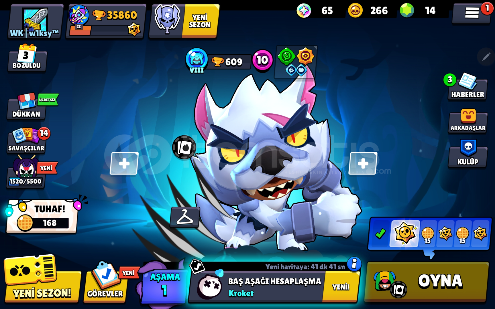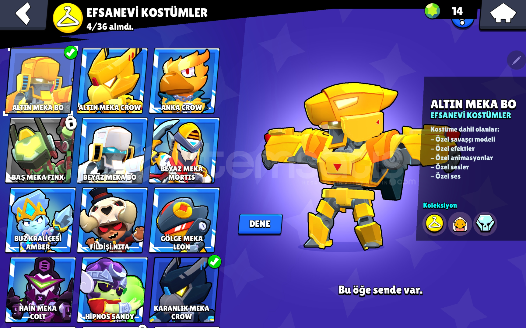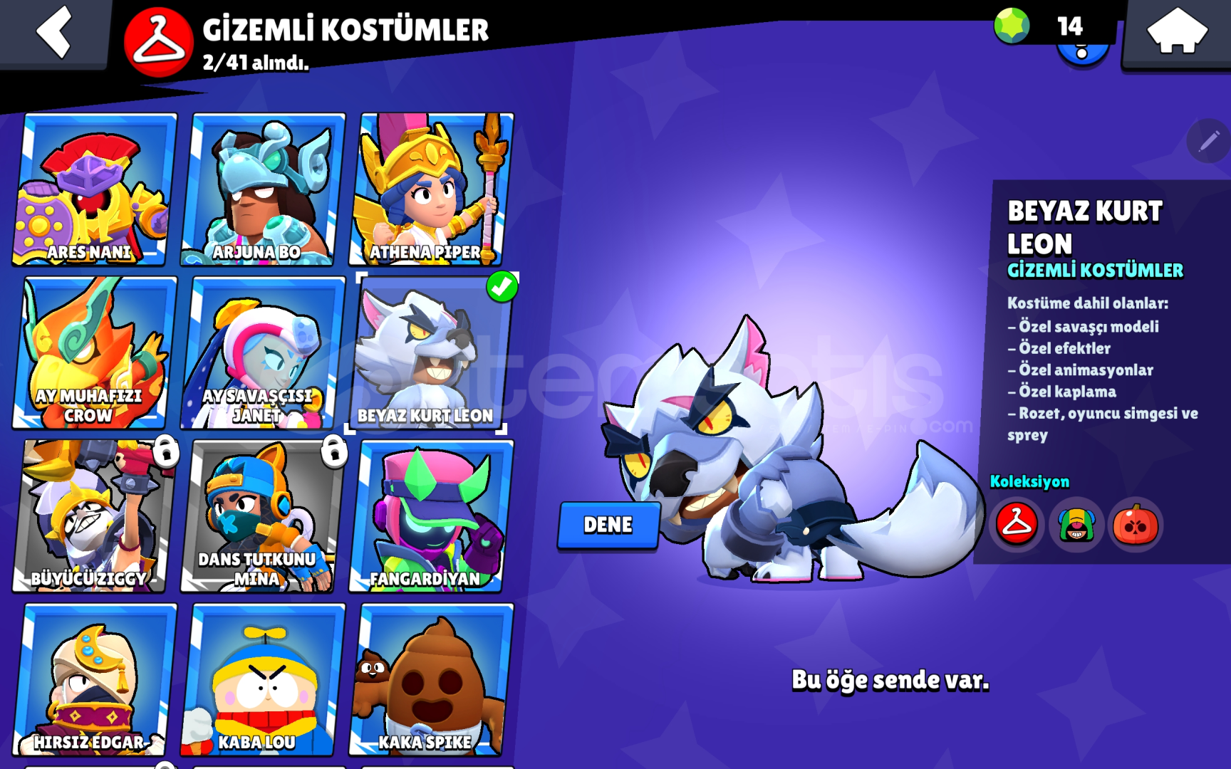 Hesap 35k 5 adet efso kostum vardir karanlik meka crow gibi nadir kostumler vardir + kurt adam leon gibi gizemli kostumleri mevcuttur 120+ kostumu vardir 9dan fazla hipsarjli karakteri vardir sadece 800tl