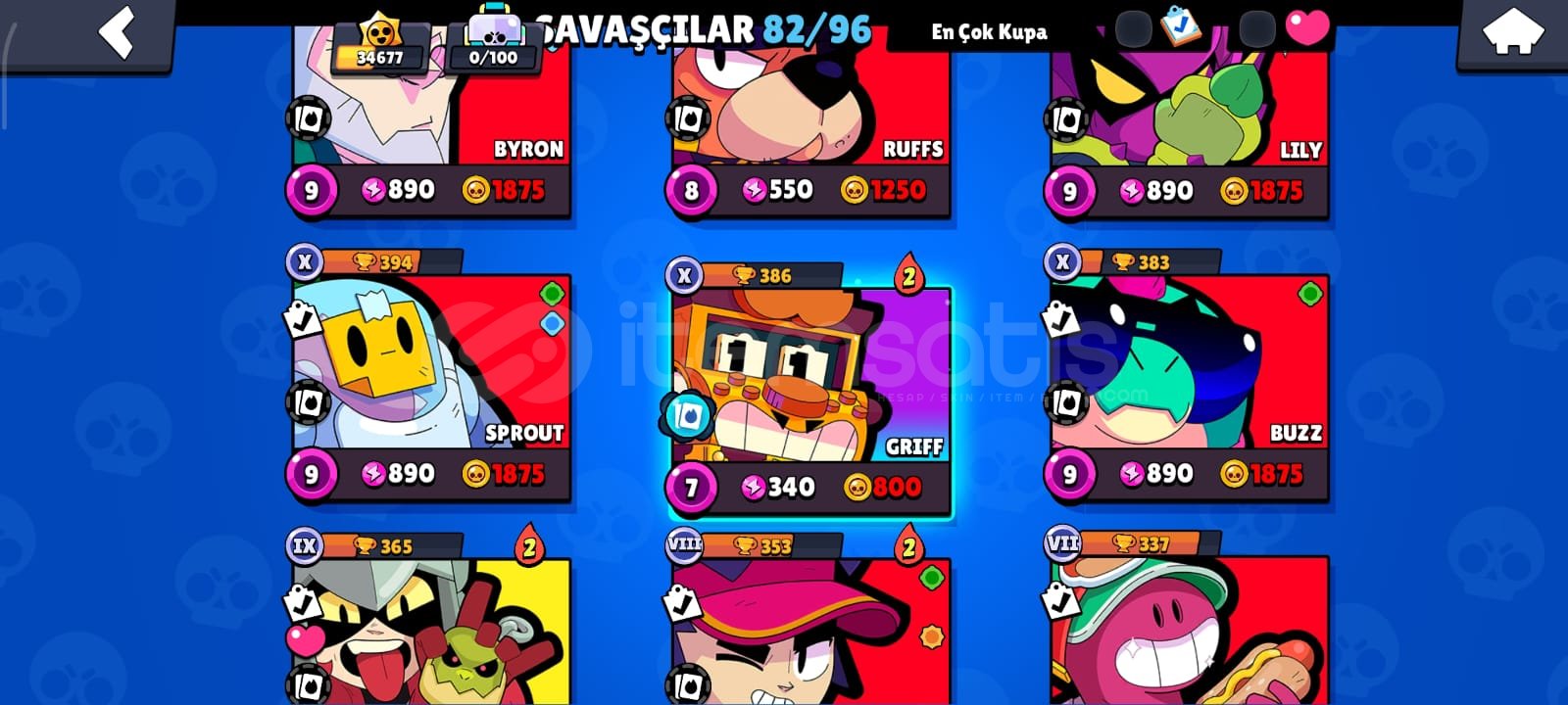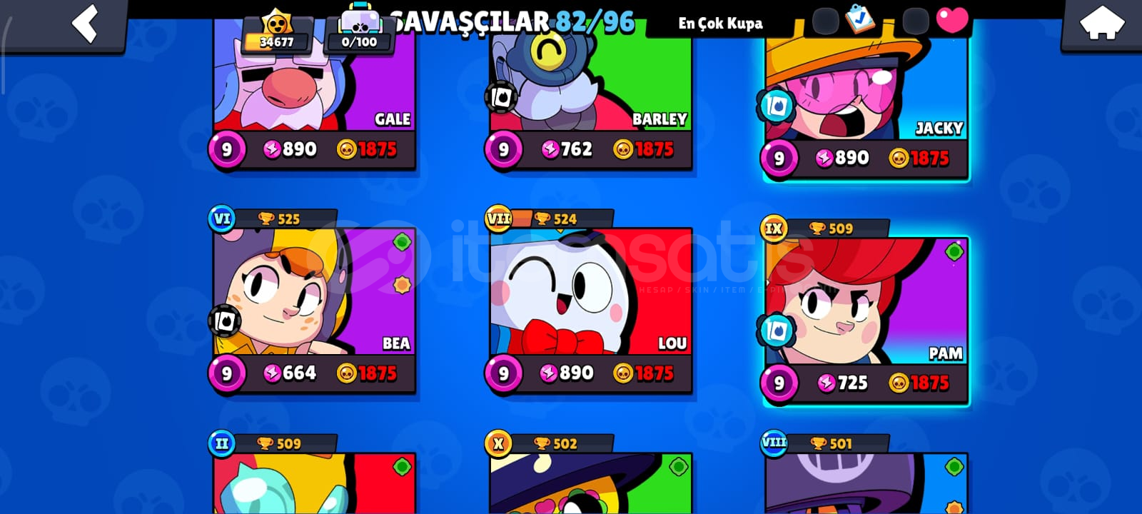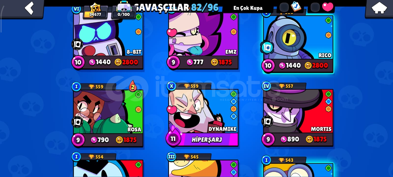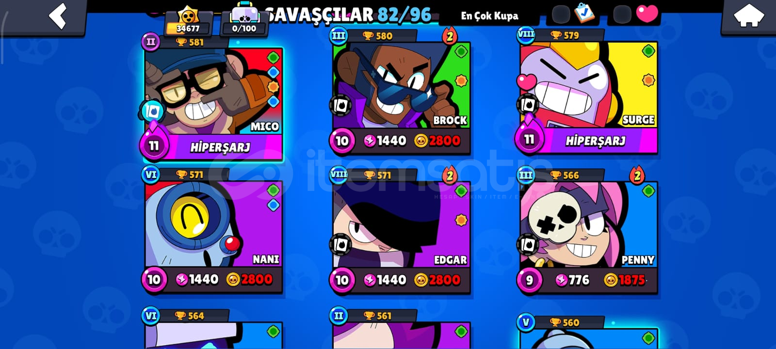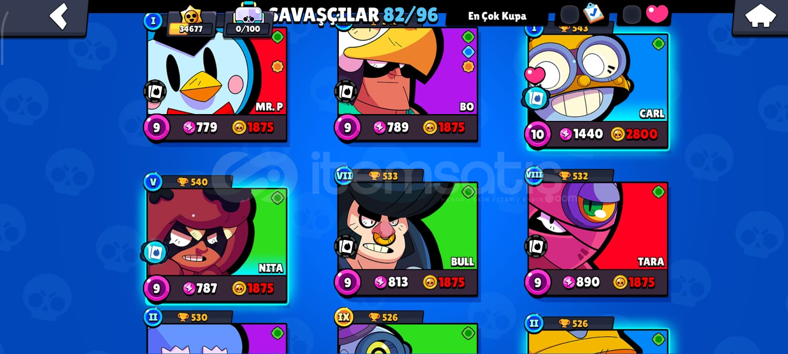 🎮 HESAP ÖZELLİKLERİToplam Kupa: 34686Açık Karakter Sayısı: 82Efsanevi / Gizemli / Destansı / Süper Ender / Ender Karakterler:Efsanevi: (DRACO,KIT,CORDELİUS,SURGE,MEG,LEON,CROW,SPİKE)Gizemli: (JUJU,MOE,CLANCY,LILY,MELODIE,MICO,CHARLIE,CHUCK,DOUG,WILLOW,R-T,GRAY,JANET,EVE,FANG,BUZZ,RUFFS,LOU,SQUEAK,BYRON,SPROUT,MR.P,MAX,GENE,TARA,MORTIS)Destansı: (MEEPLE,SHADE,BERRY,ANGELO,LARRY İLE LAWRIE,PEARL,HANK,MAISIE,MANDY,SAM,LOLA,A...