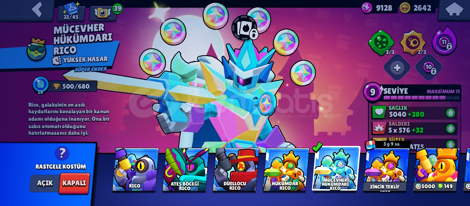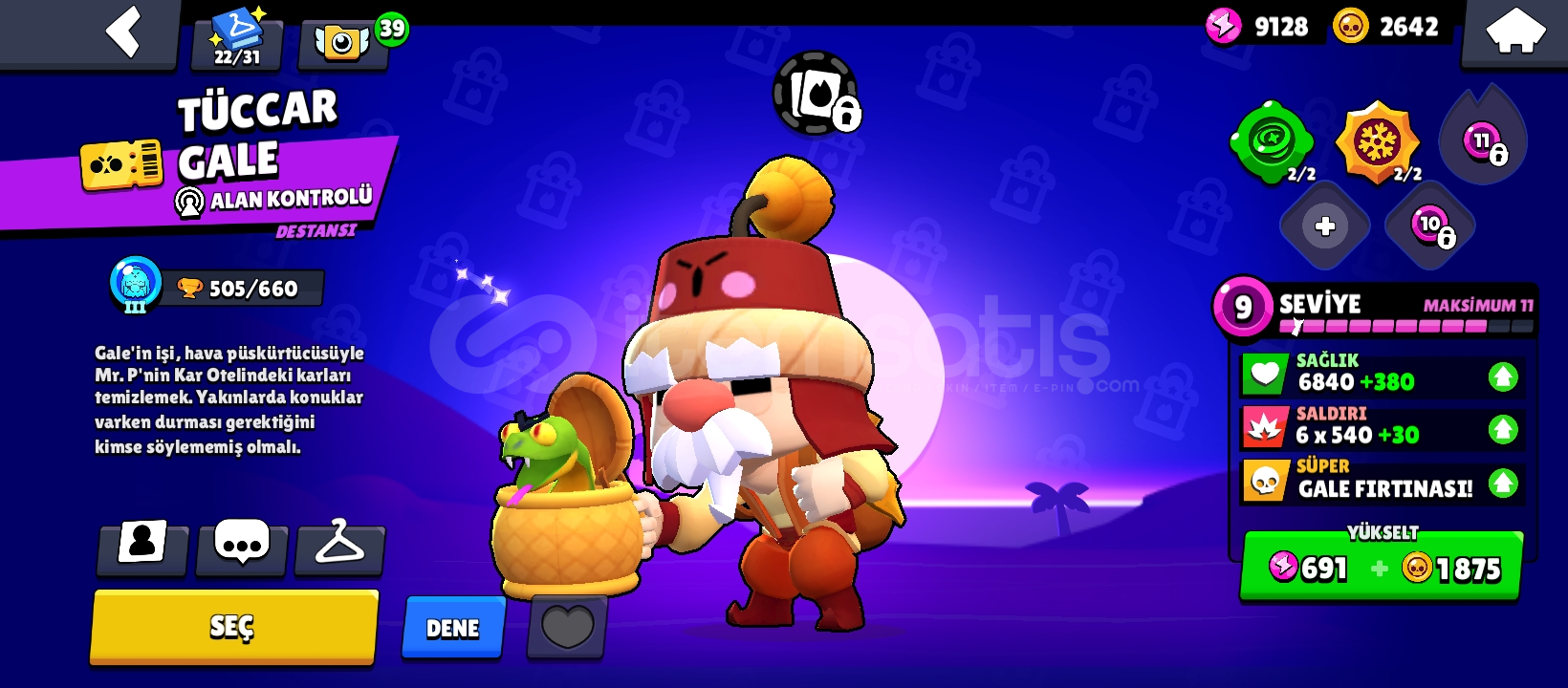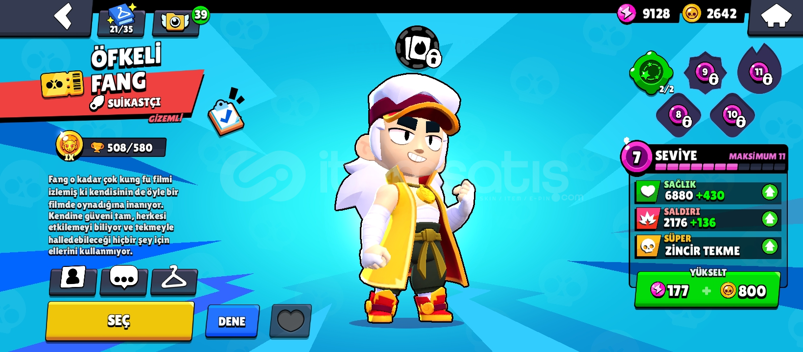 35KVirüs 8-Bit gibi oyundan kaldırılan biçok kostüm mevcuttur yani artık satışı yapılmayan bidaha gelmeyecek kostümler mevcuttur10 taneden fazla resim yükleyemediğim için tüm kostümleri göstermedim hesapta 85+ kostum vardırEn az 3 kez brawl pass açılmış oyuna gelen ilk brawl pass olan gale mevcutturYine ilk gelenlerden biri olan fang mevcuttur❗❗❗Hesap üzer...