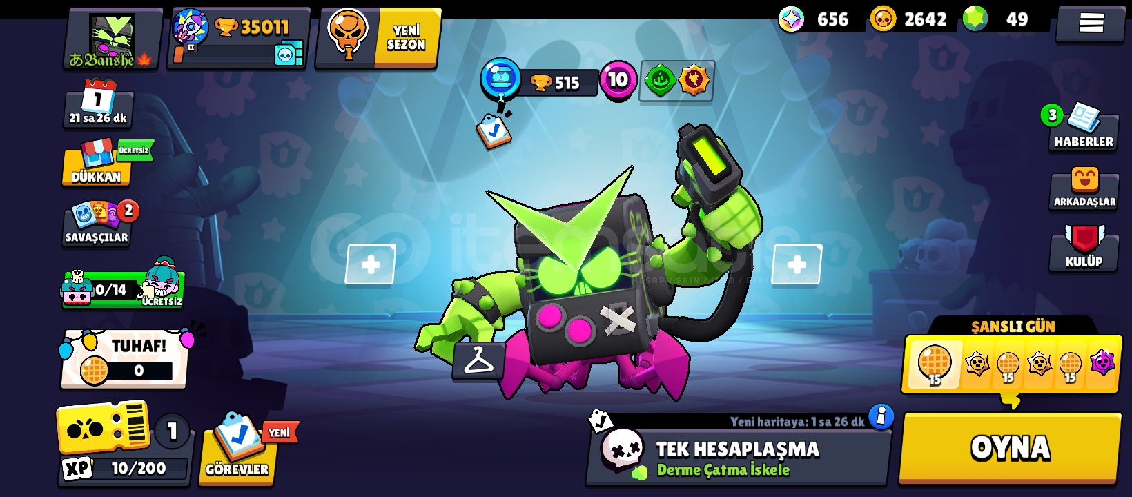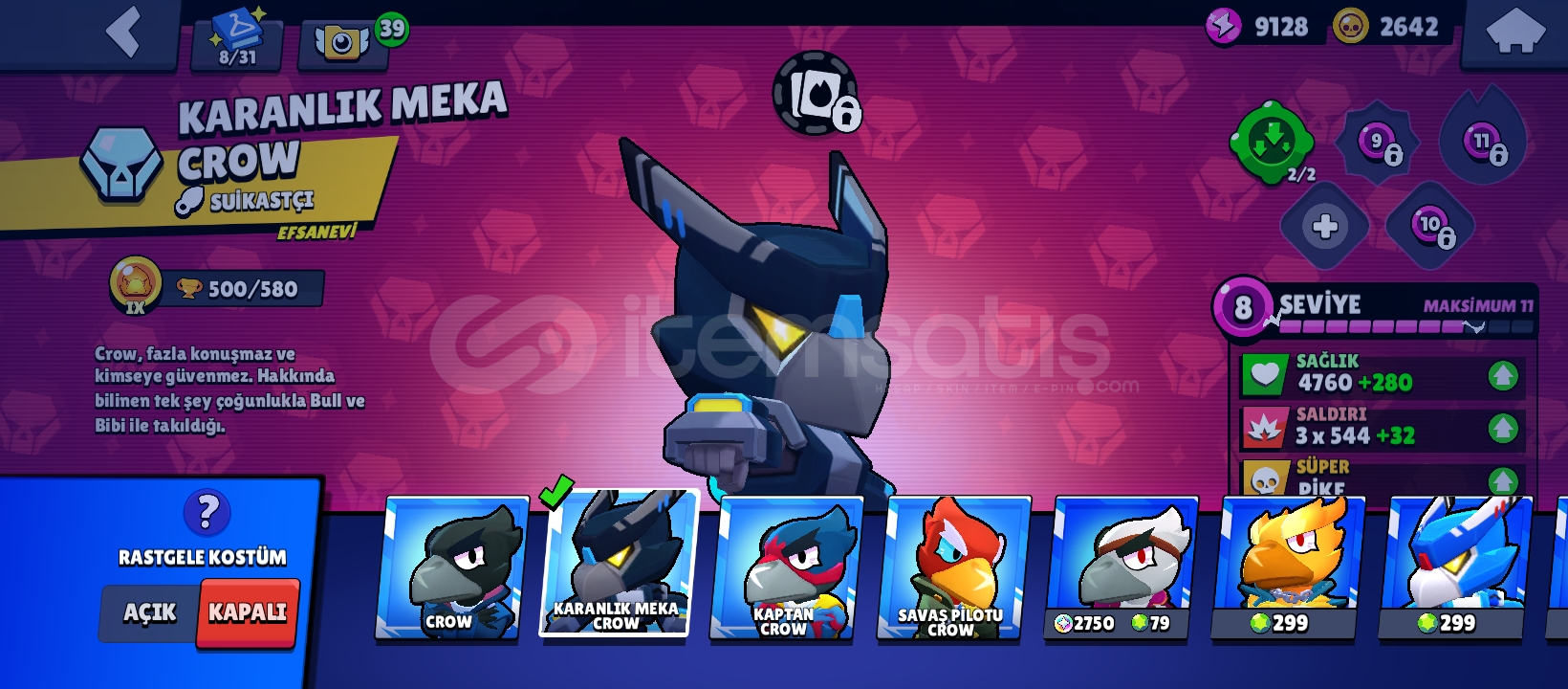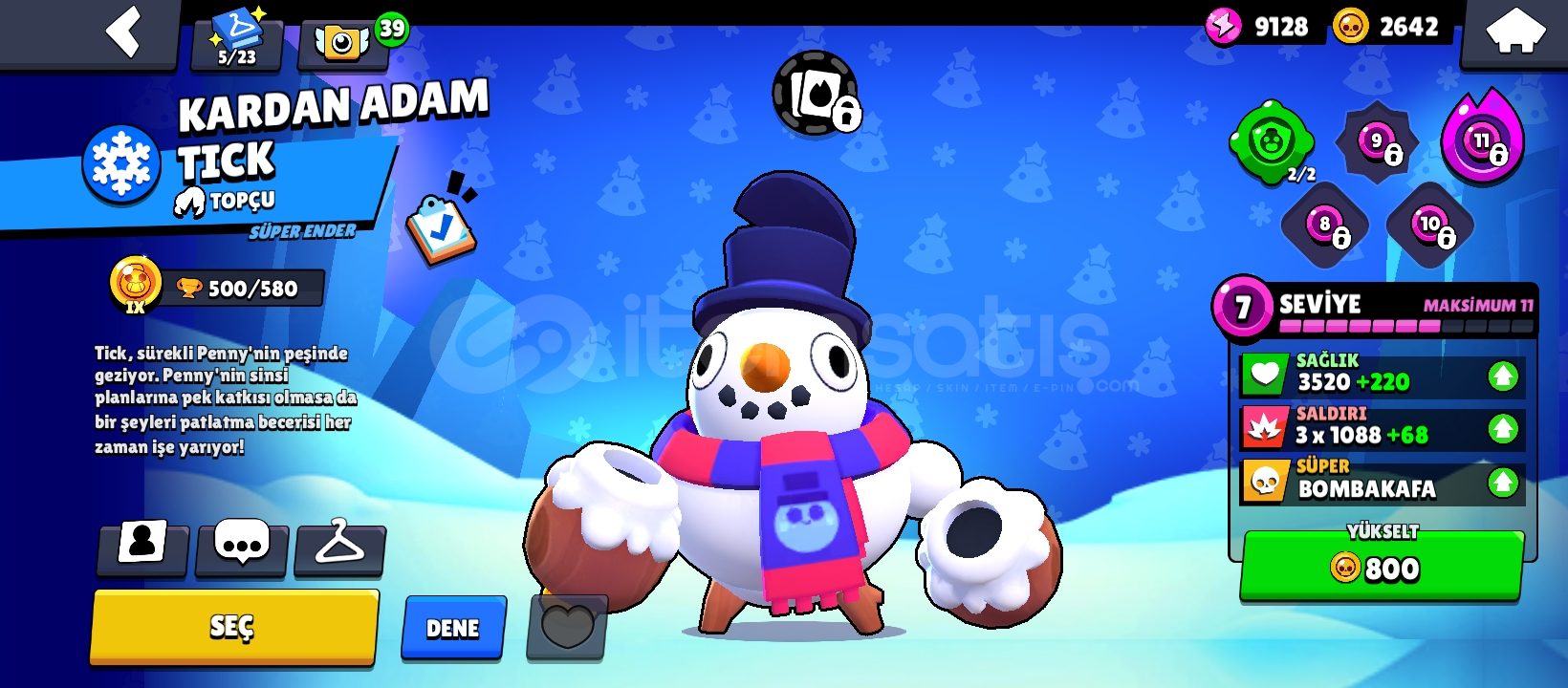 35KVirüs 8-Bit gibi oyundan kaldırılan biçok kostüm mevcuttur yani artık satışı yapılmayan bidaha gelmeyecek kostümler mevcuttur10 taneden fazla resim yükleyemediğim için tüm kostümleri göstermedim hesapta 85+ kostum vardırEn az 3 kez brawl pass açılmış oyuna gelen ilk brawl pass olan gale mevcutturYine ilk gelenlerden biri olan fang mevcuttur❗❗❗Hesap üzer...