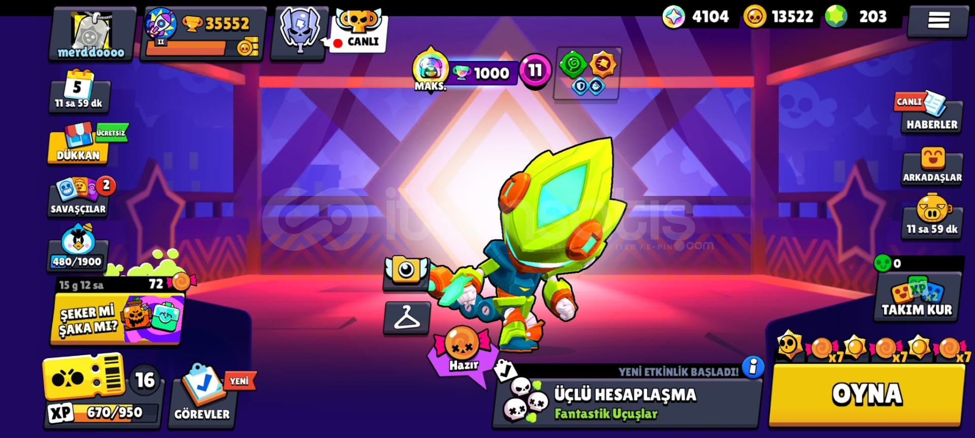 36000 kupa güzel skinli hesap