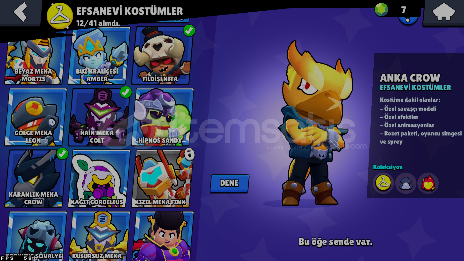 ender-süper ender-destansı-efsanevi karakterlerin hepsi hesap içerisinde mevcuttur